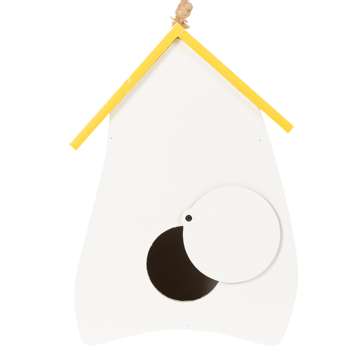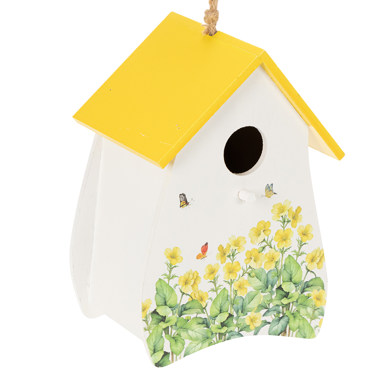 What brings a breath of fresh air to your interior design and gives your home that certain something? Exactly, a decorative piece that catches the eye! This birdhouse in radiant white with a yellow roof and delicate floral motifs instantly brings cheer and a touch of spring into your home. Perfect for windowsills, living rooms, or balconies. It's not only charming but also wonderfully versatile, adding a loving accent to your living space. The sturdy cord makes hanging it a breeze, and those who like to redecorate will appreciate the practical opening on the back. Get this little gem and let it become the highlight of your interior décor!