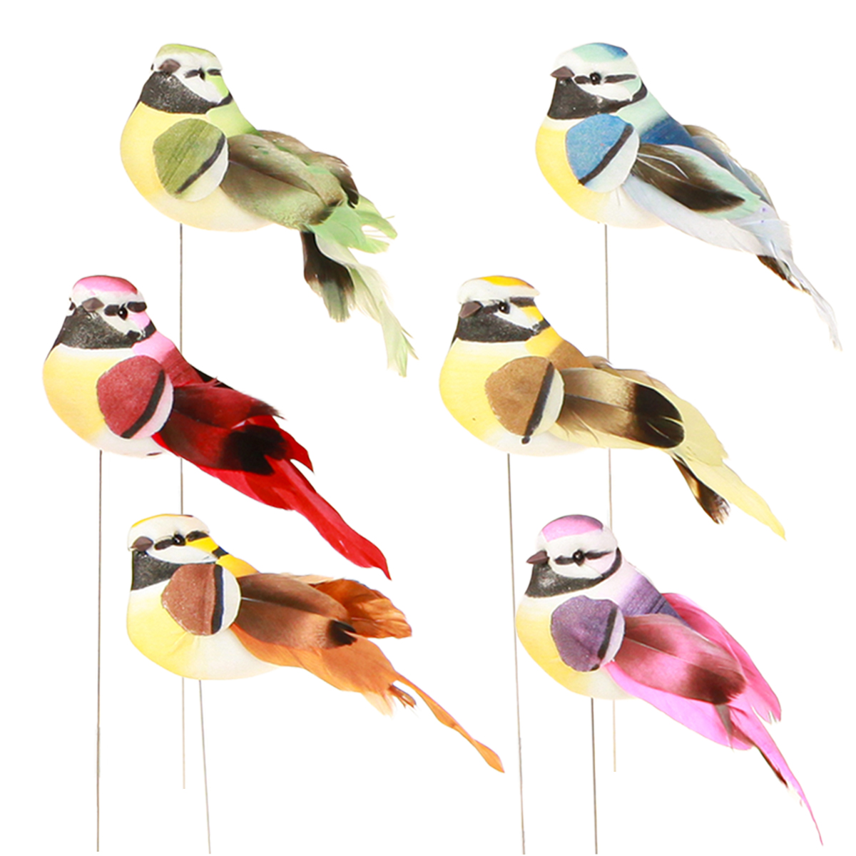 Bring spring freshness into your home with our enchanting decorative birds with feathers on a wire. These 12 artfully designed bird figures are available in six different designs, which impress with their detailed workmanship and vibrant colors. Each bird is about 8cm × 3.5cm × 3.5cm in size, made of high-quality foam and decorated with real, dyed feathers in vibrant colors. The delicate birds are equipped with a flexible wire that is 22 cm long, which makes them particularly easy to integrate into wreaths, arrangements or plant decorations. Whether on the window, as a table decoration or in a flower arrangement - these versatile decorative birds give every room a cheerful and creative touch. They are a real eye-catcher, especially in spring, and can be ideally combined with other floral elements from Floristik24.