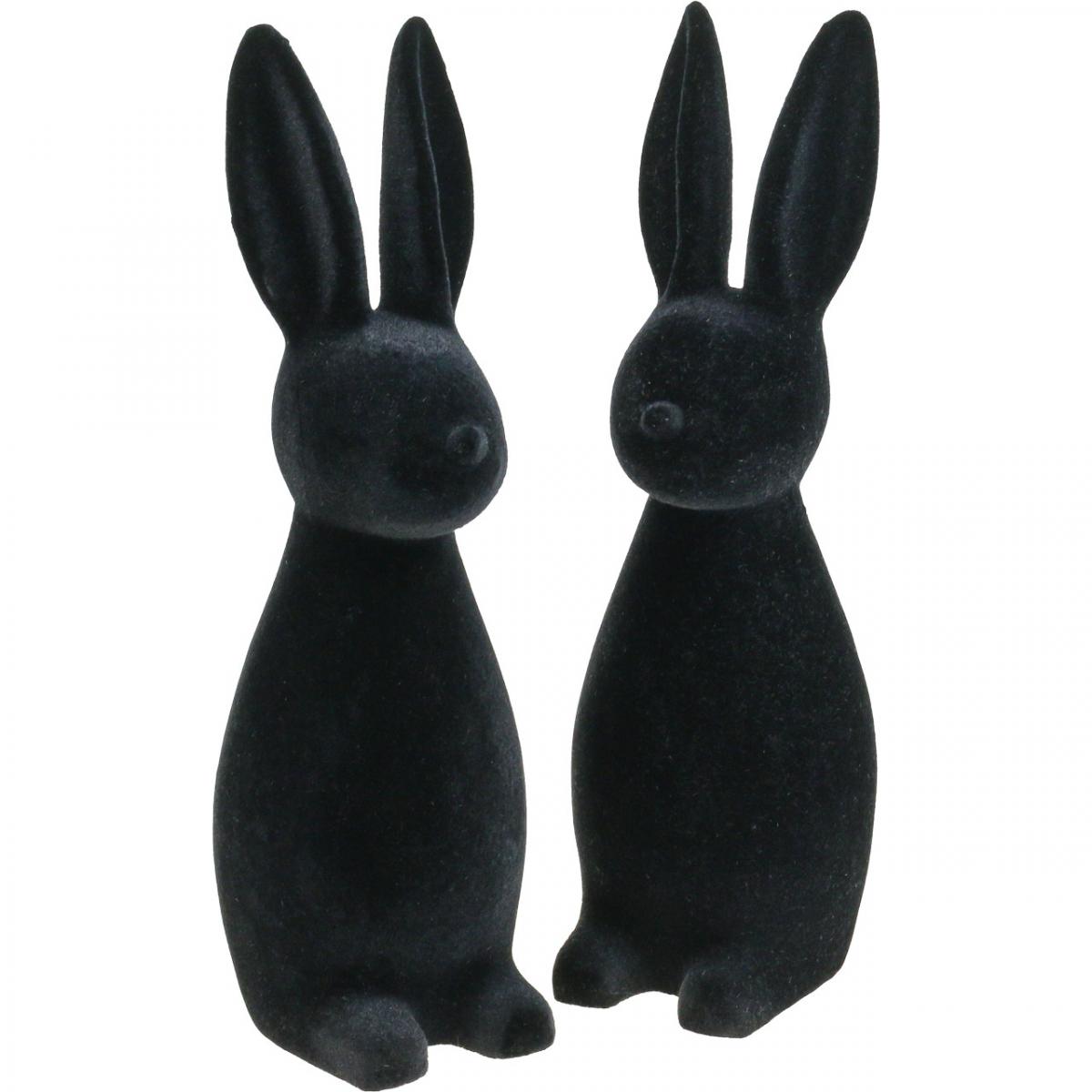 Product name: Decorative Black Easter Bunny, Flocked, 29.5cm High, 2 Pieces
