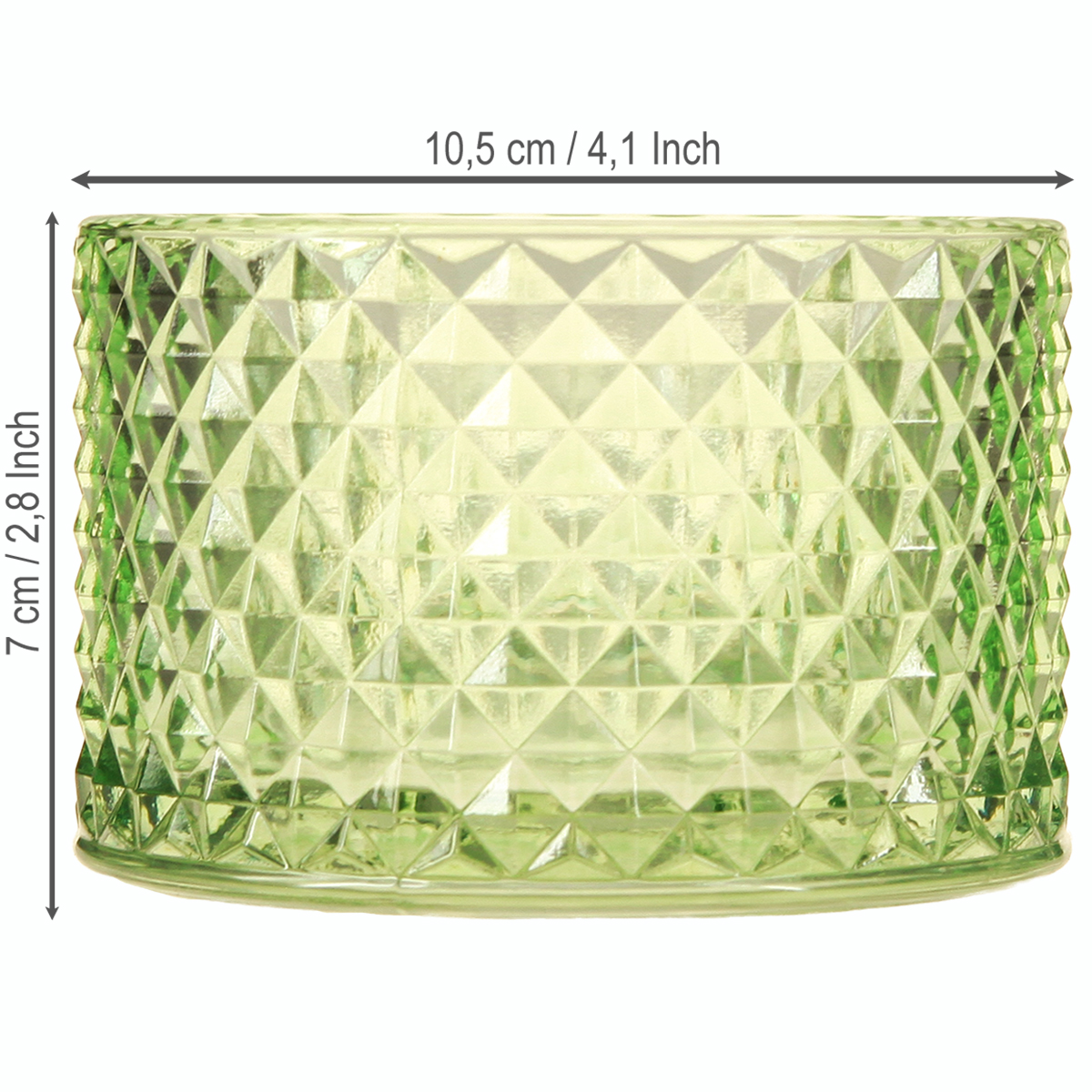 The green color of the bowl symbolizes freshness and harmony. In color psychology, green is often associated with calm and growth. This bowl pairs beautifully with white or yellow accessories to create a natural and inviting atmosphere. In religious or cultural contexts, green can also represent hope and renewal, which makes these tealight holders particularly symbolic. With wooden or stone elements from our Floristik24 range, you can perfectly complement the natural touch to create a harmonious and relaxing environment in your home.