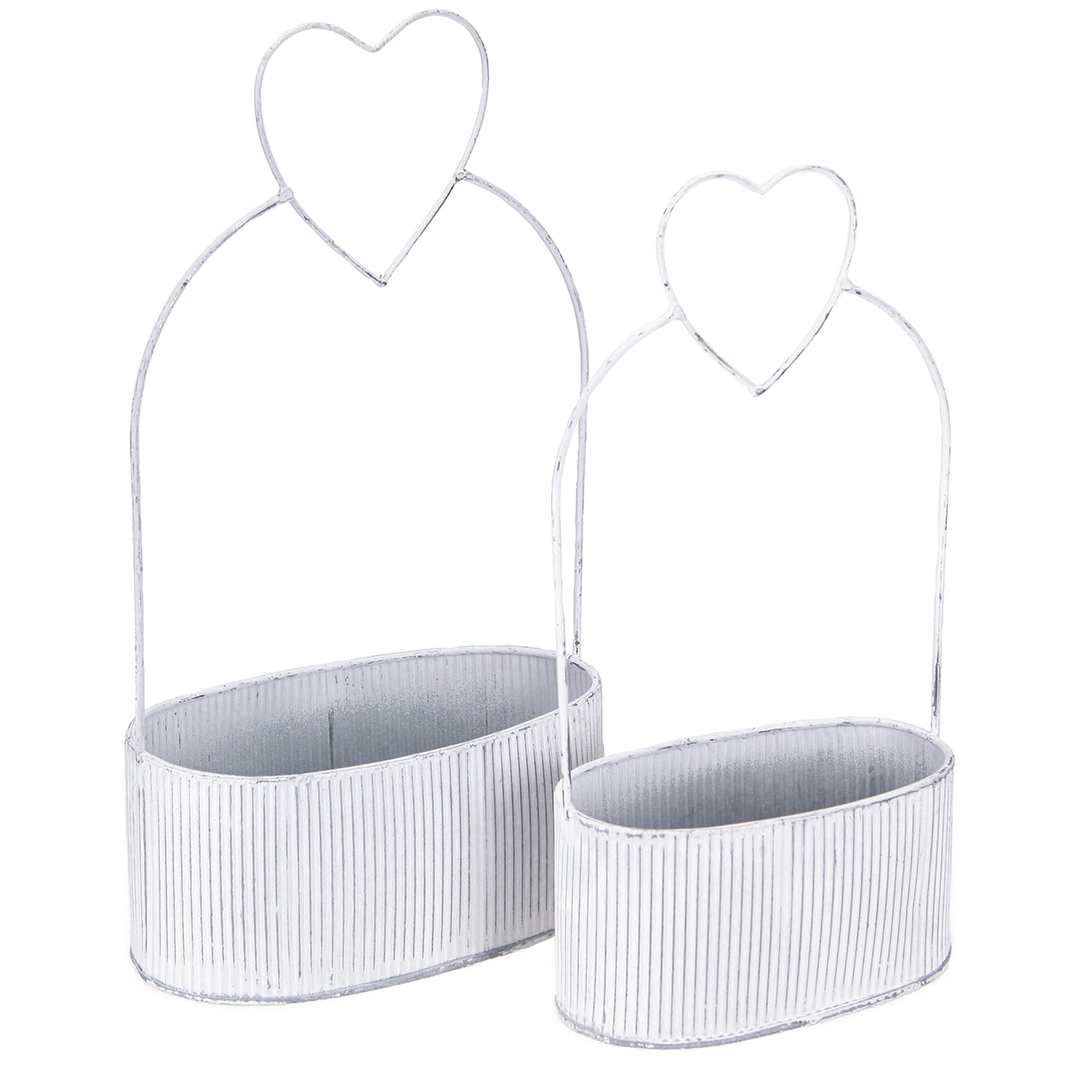 This charming set of two metal decorative bowls in a graceful oval design is the perfect addition to any home that needs a touch of romantic sophistication. The white planters with their heart pattern exude a classic elegance that pairs perfectly with a variety of interior styles. Whether country house, shabby chic, or modern minimalism, these heart-shaped, embossed bowls will blend perfectly with your existing decor. The grooves with metallic gray abrasion create a trendy vintage look that will delight lovers of nostalgic design. The two bowls, in different sizes, are not only suitable for stylish table decorations but also offer numerous creative decorative options, such as planting succulents or arranging candles. Combine these oval bowls with other lovingly selected white metal home accessories from Floristik24 for a harmonious overall look. The wire hearts on the handles also offer the opportunity to create a personalized flair with small loops.