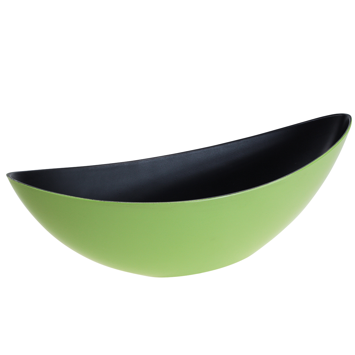 You will receive the boat with a length of 38.5 centimeters and a width of 12.5 centimeters. The outside is shiny green, the inside and bottom are black. The two-tone color gives the bowl another attractive touch when it is not filled. In addition, the apple green slightly reflects the surroundings.