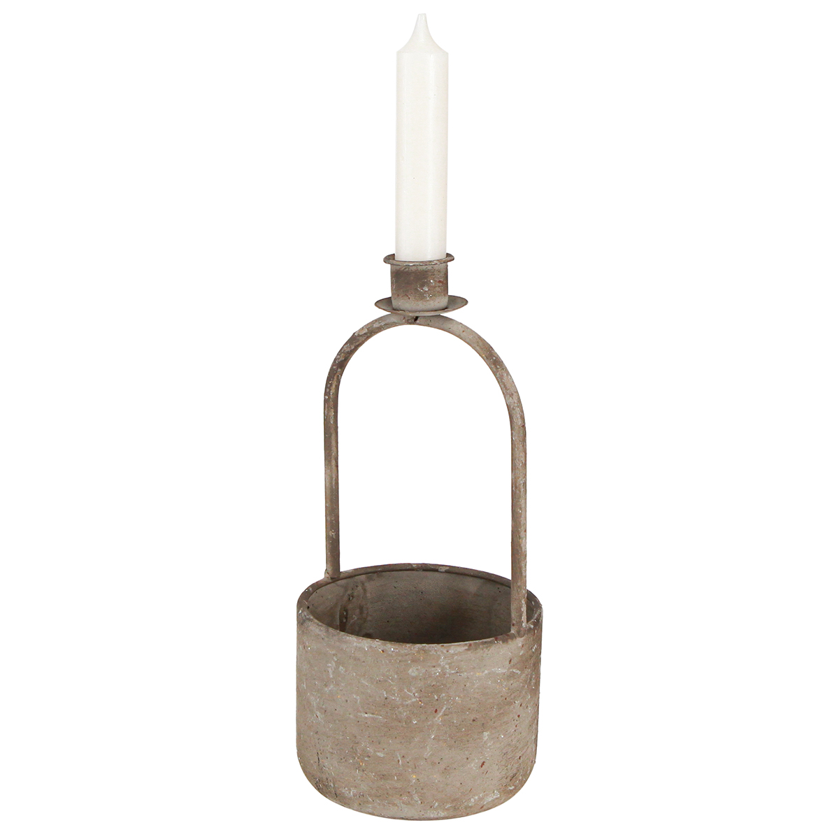 Decorative bowl with candle holder antique grey rust Ø11cm H23.5cm