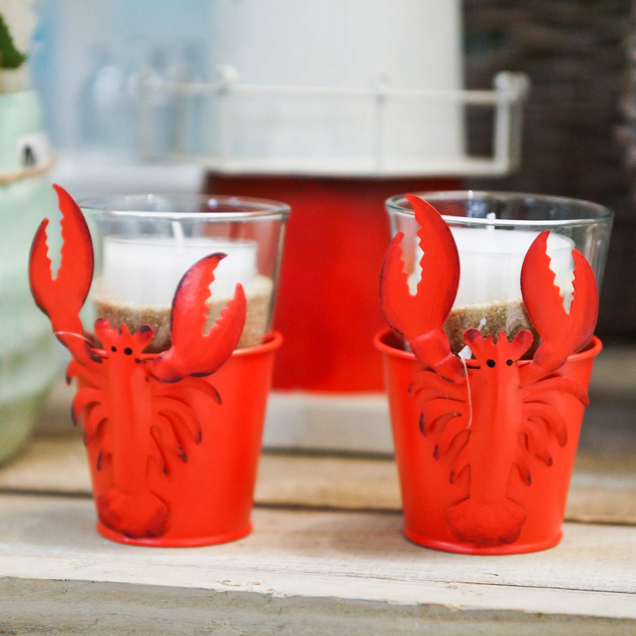 Decorative bucket lobster metal red Ø8cm H13cm 3 pcs