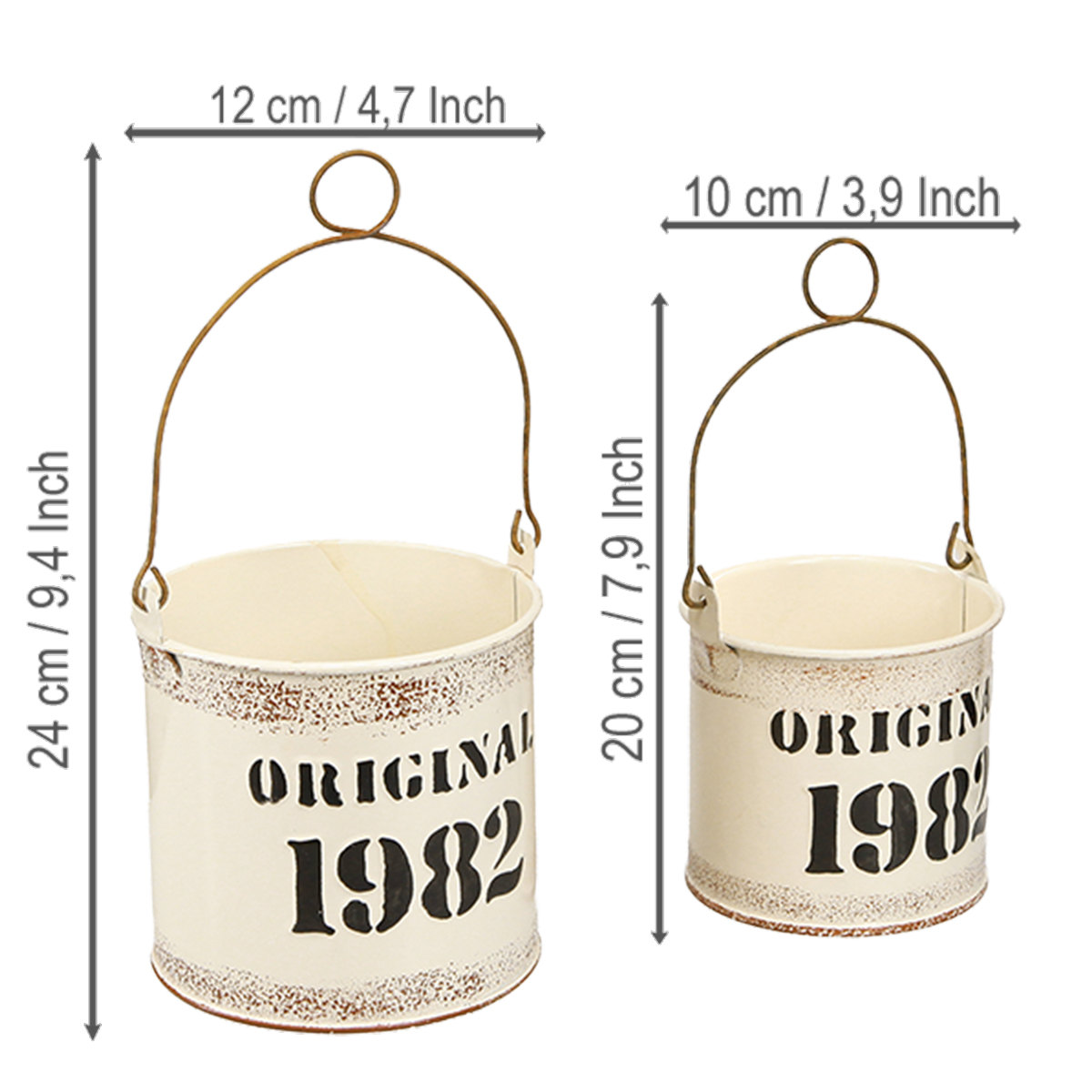 Decorative bucket with handle “Original 1982” Cream Ø12/10cm 2×2-piece set