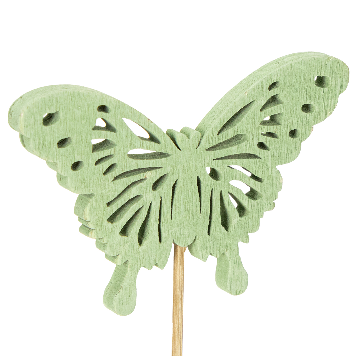 These butterfly decorations are not only beautiful to look at, but also incredibly versatile. Each set includes 16 wooden butterflies, each 8 cm in size, mounted on sturdy 29 cm long stakes. Their delicate pink, green, purple, and yellow hues create a subtle yet charming effect, making them easy to combine with other natural tones or more vibrant colors. Whether used as an accent in a rustic country-style decor or as a cheerful element in a modern urban jungle look, the possibilities are endless.