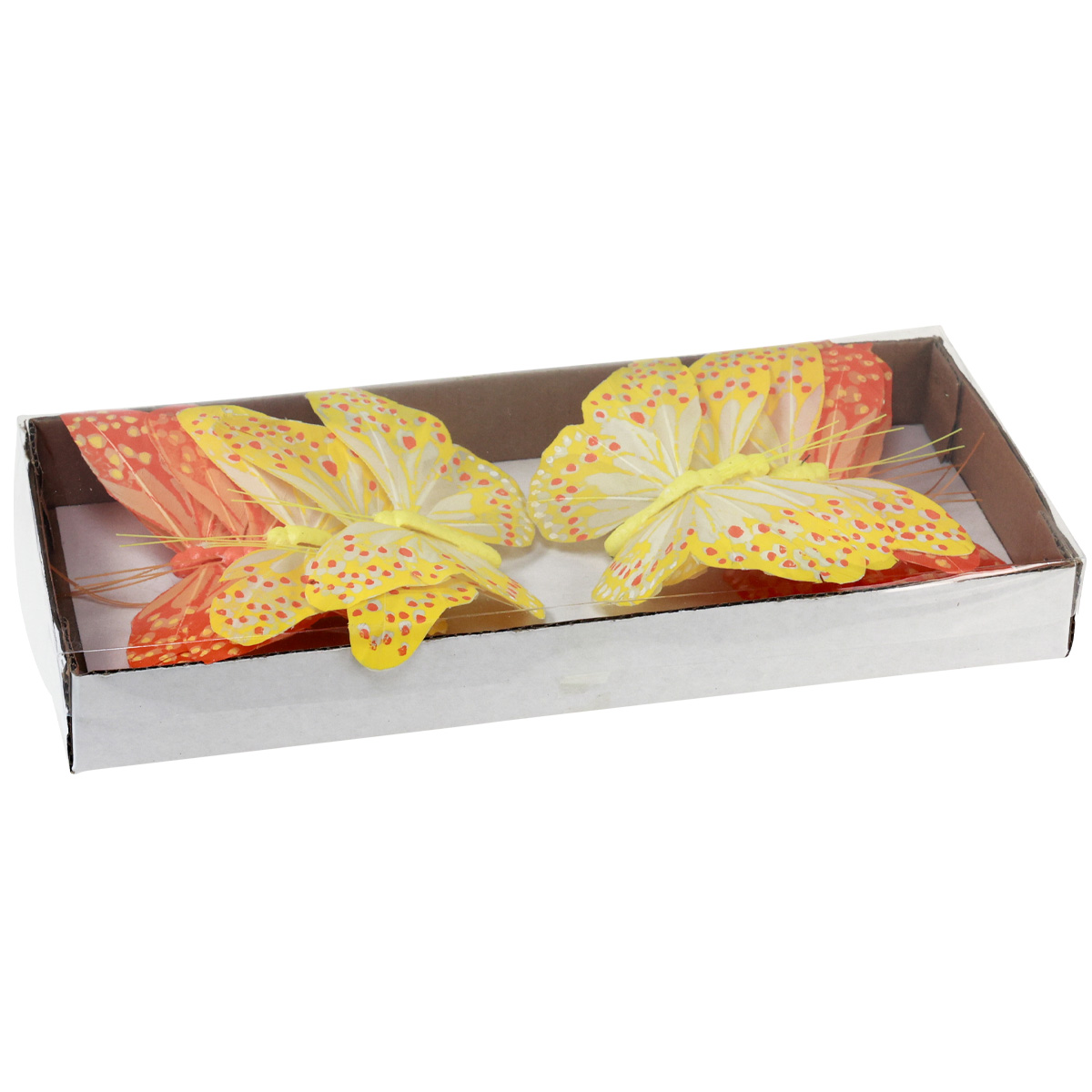 Product name: Decorative Butterflies on Wire Feathers Orange Yellow 7×11cm 12 pcs