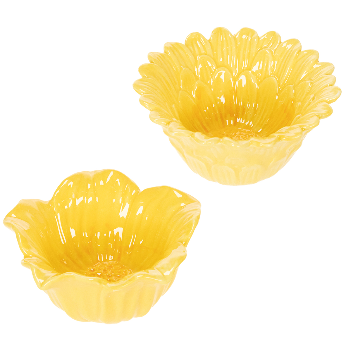 Who doesn't love adding a personal touch to their home with small details? These decorative yellow ceramic flower bowls are the perfect accessory to instantly add fresh pops of color and stylishly decorate your home. With their charming floral design in vibrant yellow and high-quality ceramic, they bring a modern flair right into your home. Perfect for creative floral arrangements, a lovely gift idea, or simply for displaying small decorative items. But please note: these eye-catching little pieces are not suitable for contact with food. Imagine the bowls filled with dried flowers, used as tealight holders, or as an accessory for your spring decorations in the living room – they're guaranteed to catch everyone's eye!