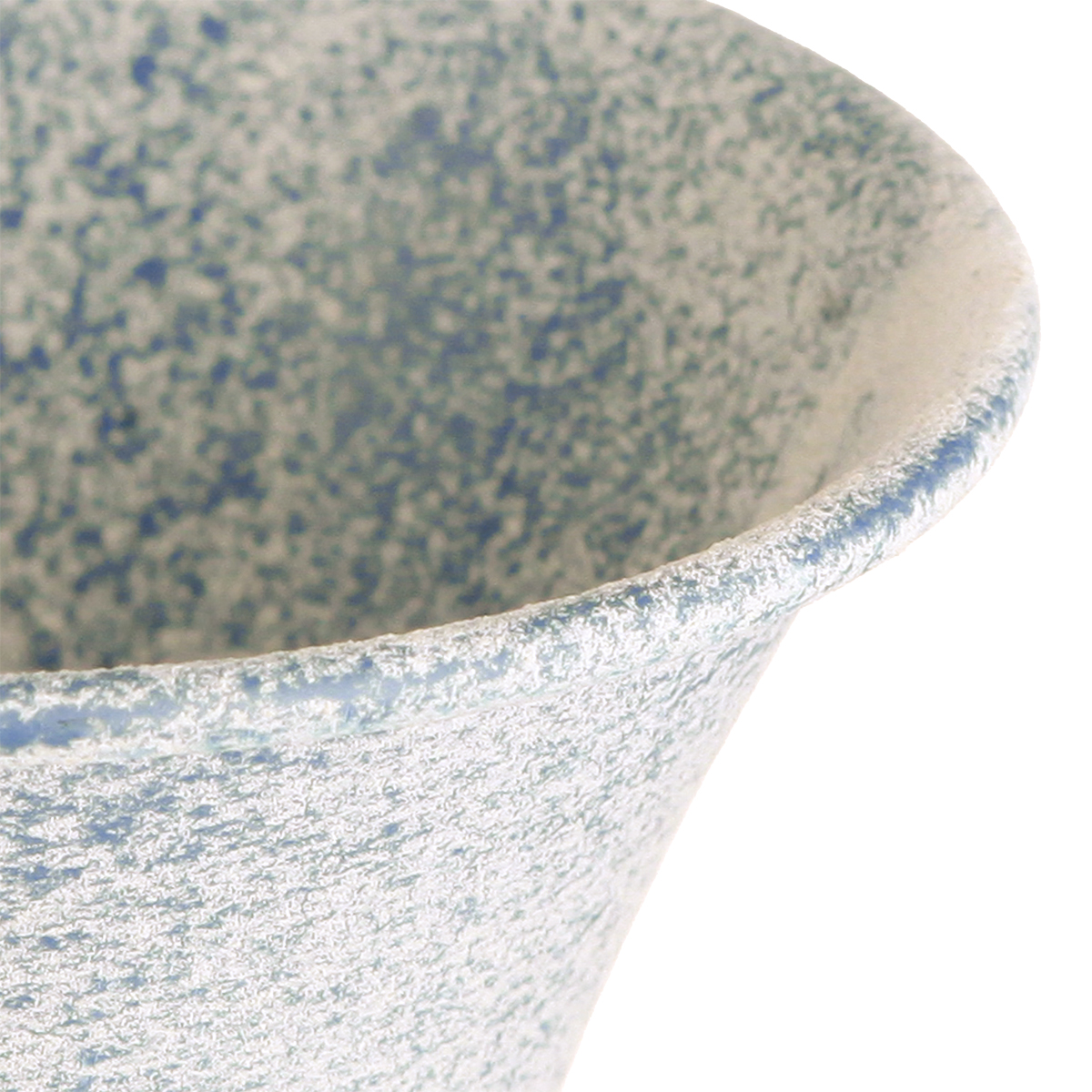 The color combination of blue and white in this chalice brings a calming, timeless elegance to any decoration. In color psychology, blue represents calm and serenity, while white symbolizes purity and clarity. The combination of these colors is ideal for creating a harmonious atmosphere. The metal of the chalice is not only robust and durable, it also combines beautifully with different textures to create an appealing contrast.