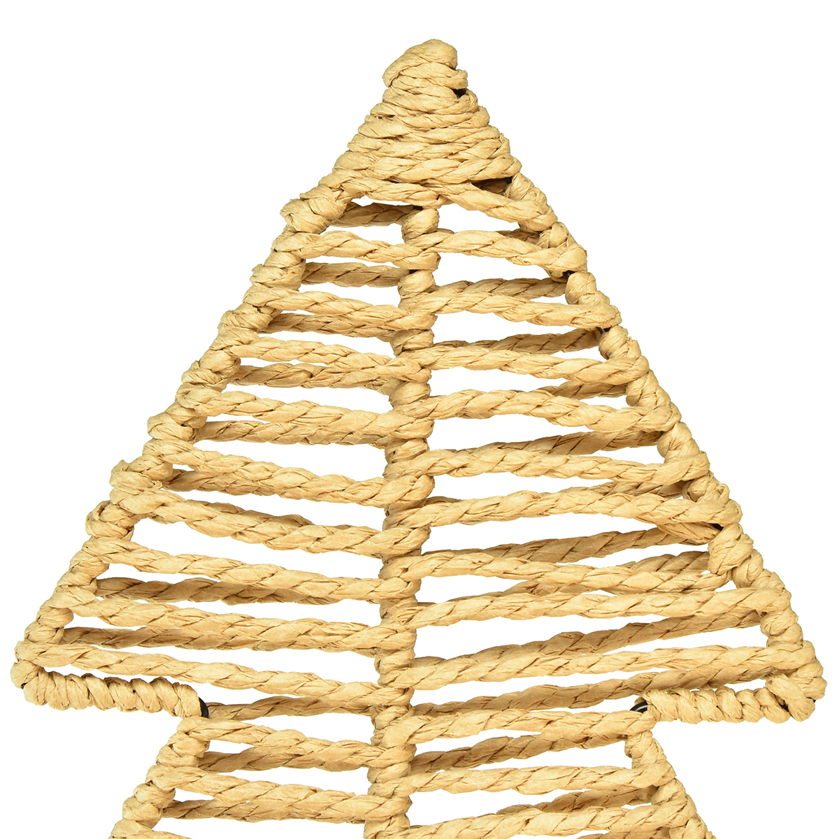 Give your living room or office a touch of festive elegance with our decorative Christmas tree in black and natural. The Christmas tree impresses with its innovative design. It combines the robust structure of the metal with the warm, natural look of the wrapped raffia fibers. The black base provides a modern contrast and gives the tree a firm hold.