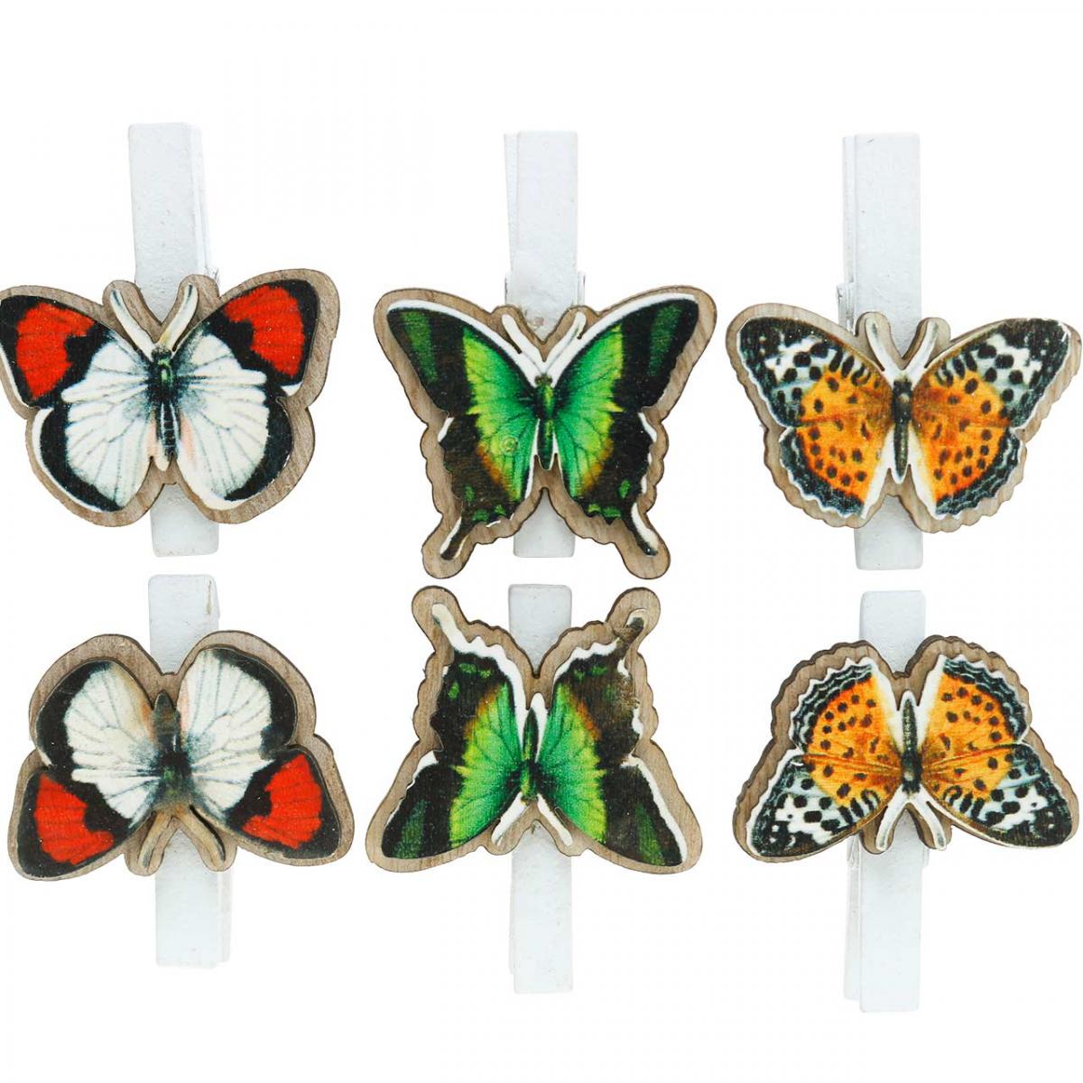 Decorative clip butterfly, gift decoration, spring, butterflies made of wood 6pcs