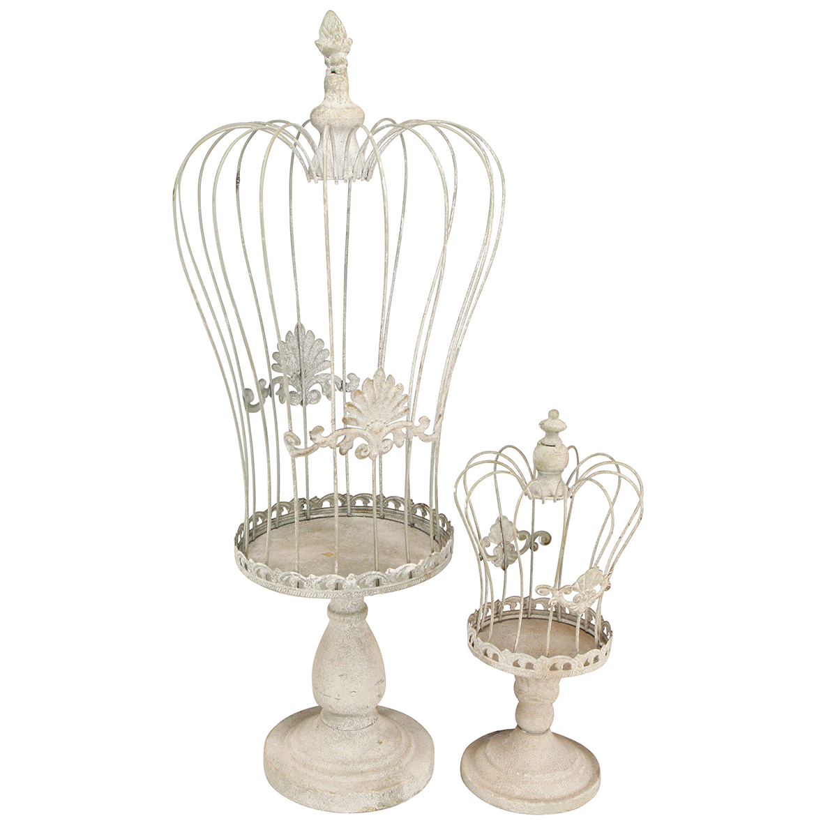 Decorative crown on foot vintage metal decoration grey 34/66cm set of 2