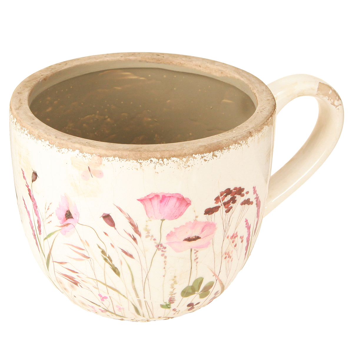 Decorative ceramic cup with poppy and crackle effect: Perfect country-style decoration with vintage charm