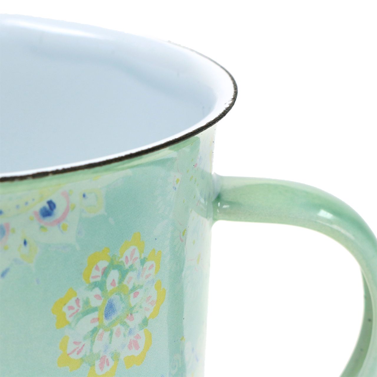 Meditative effect on the soul level: This high-quality enamelled decorative cup is designed with a noble print with great flowers and based on a mandala. Delicate pastel colors support the harmonious effect. Mandalas have a special meaning in some religions and are also used for meditation purposes. The result is a meditative experience with healing impulses that bring you back into your center.