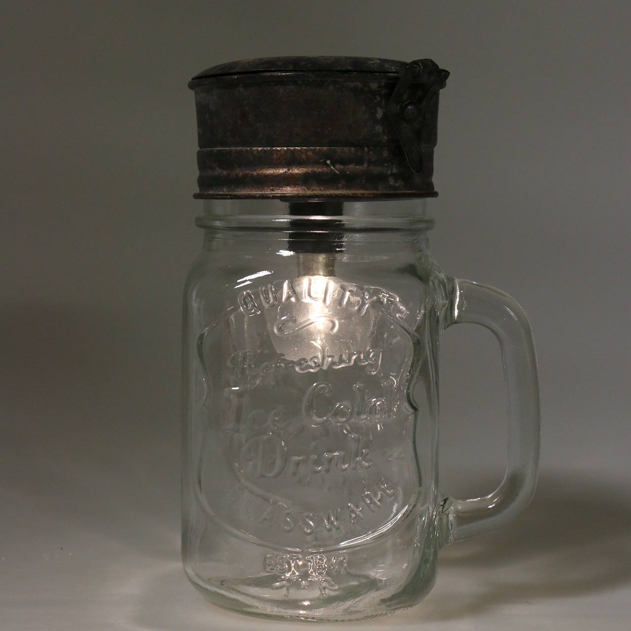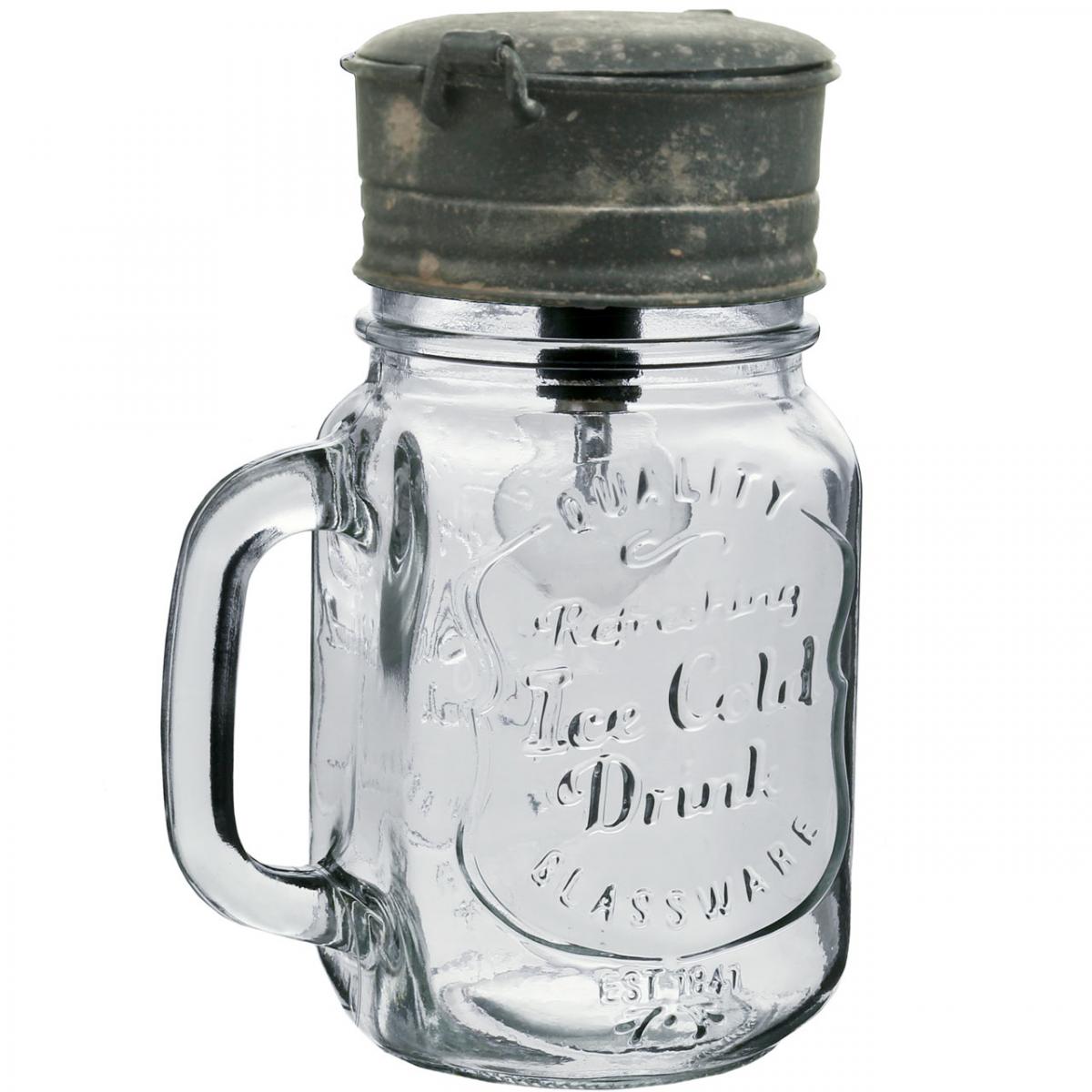 The decorative glass with light bulb can even be filled! Small stones, sand, shells, wooden stars and other decorative objects make the light bulb glass even more individual. The glass lamp with the label "Quality. Refreshing Ice Cold Drink. Glassware. Est 1841" has a metal lid with a rusty used look that can be screwed on. The light bulb is attached to it. You need two AA size batteries to operate this extraordinary table lighting. Please note that the batteries are NOT included! Place the batteries in the lid.