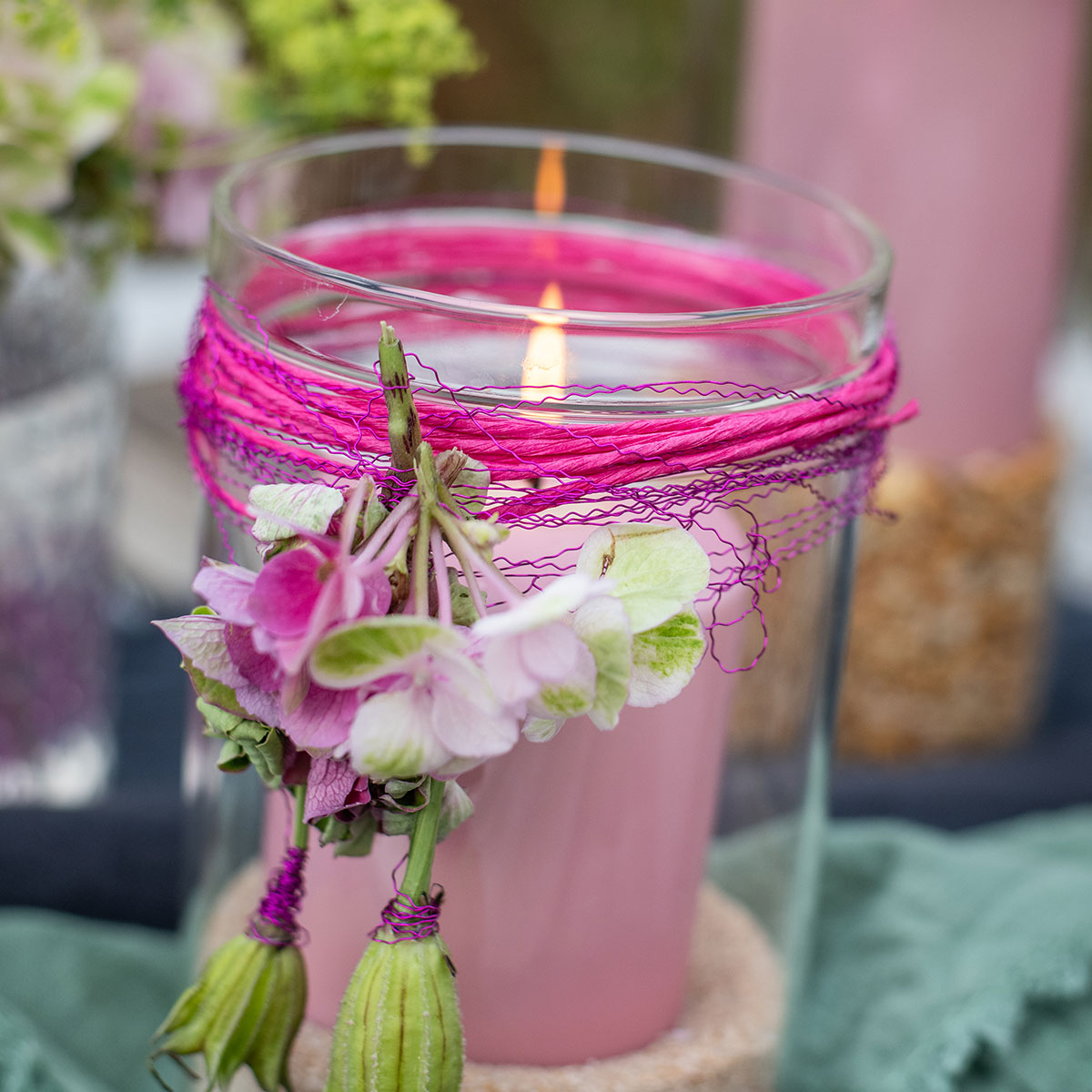 The pink decorative wire has a diameter of around 0.30 millimeters and a length of around 50 meters. The metal wire is rolled up on a spool made of plastic and has a total weight of about 30 grams. You can also hang the roll through the tube in the middle and thus unwind it more easily.