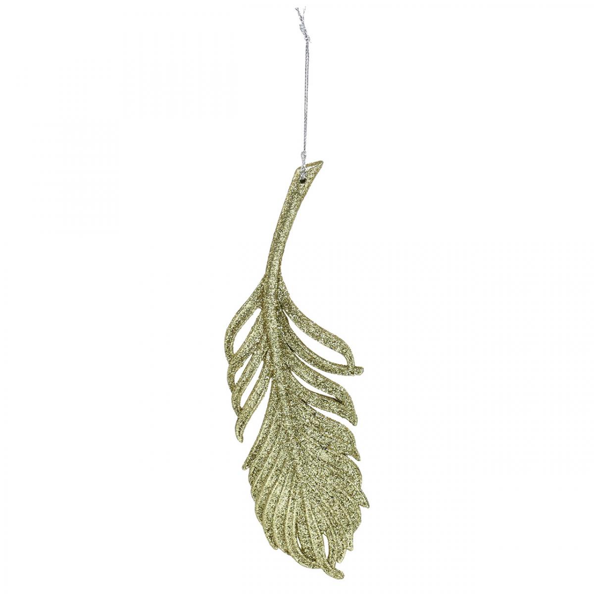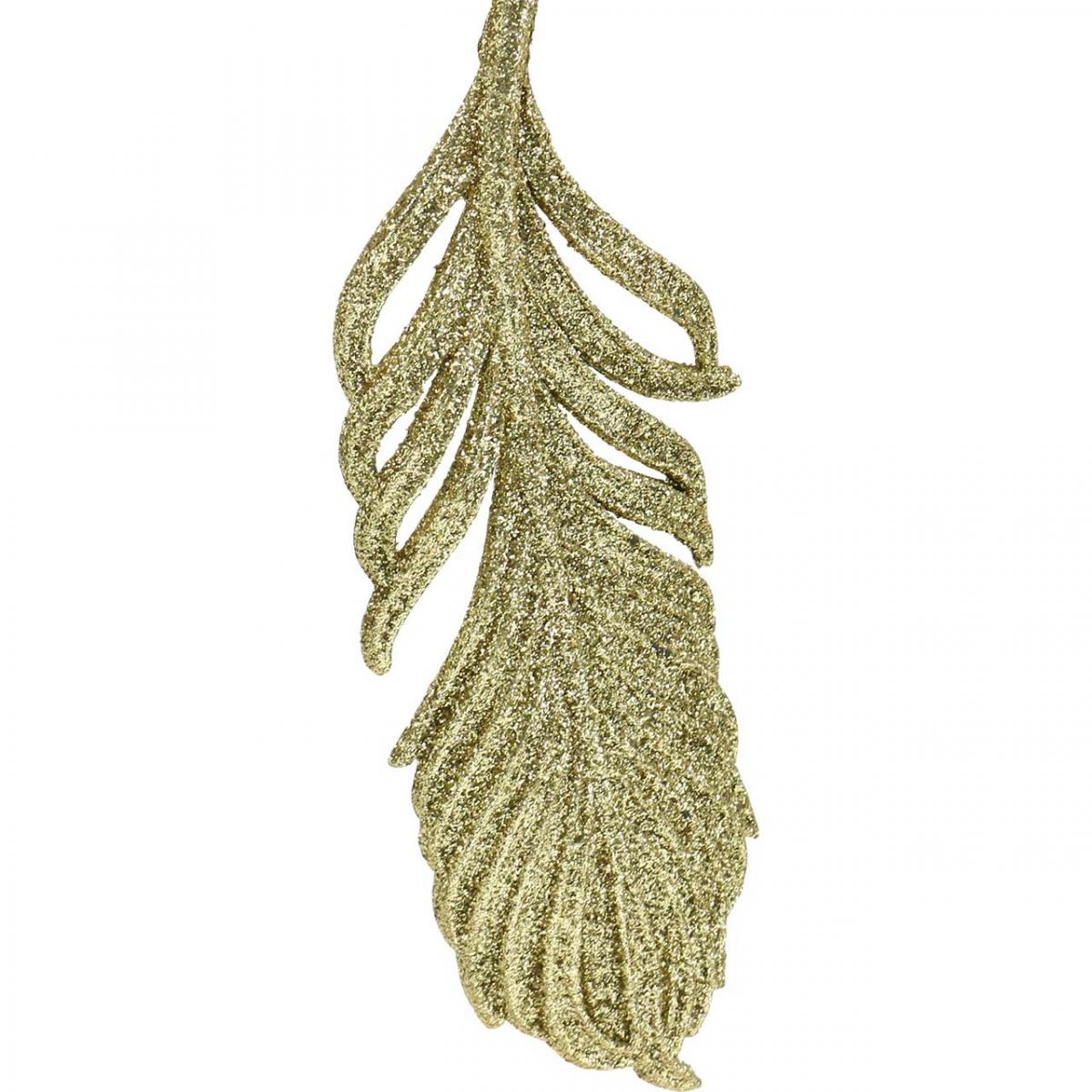 Decorative feathers, tree decorations with glitter, advent decorations, feathers for hanging golden L22cm 12pcs