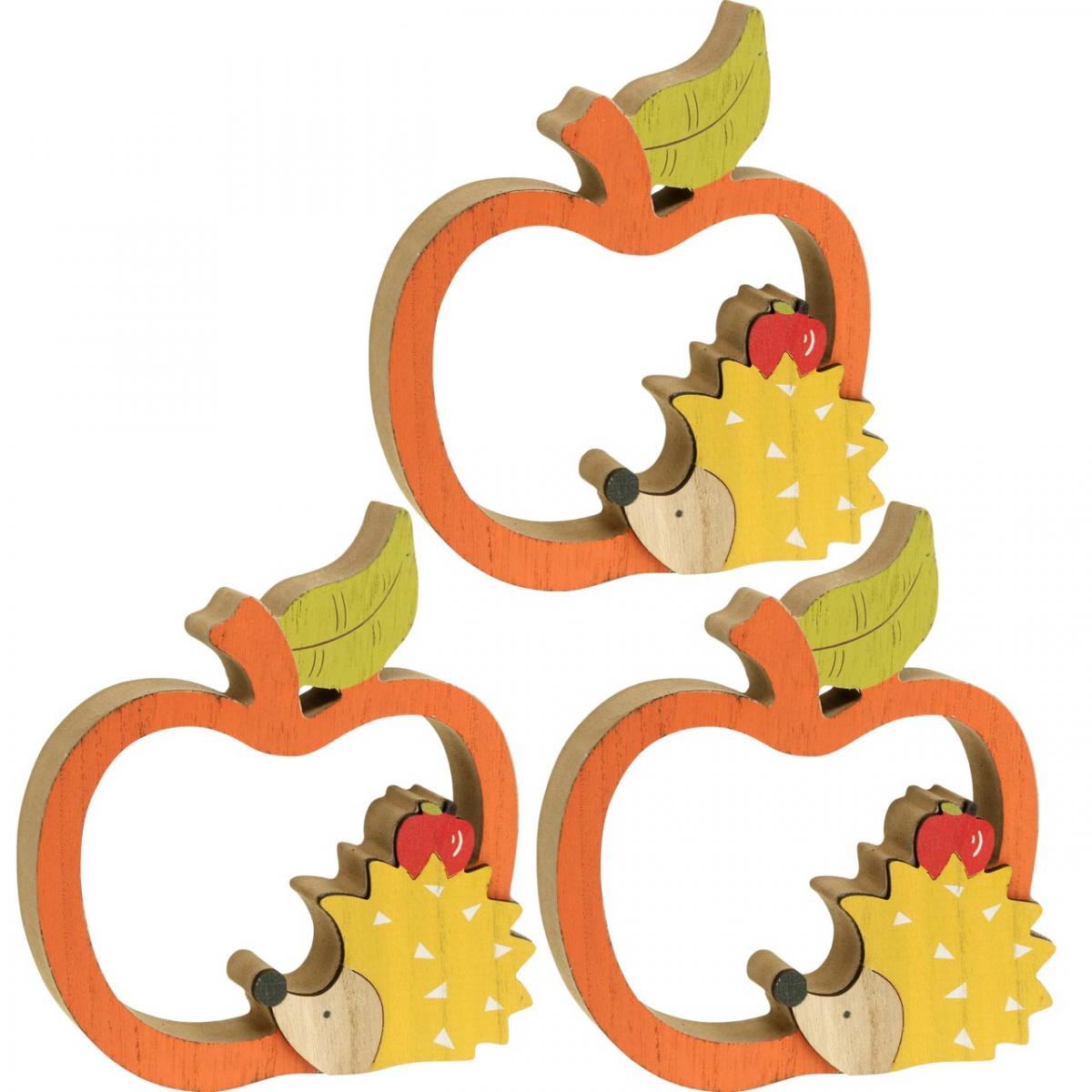 Decorative figure autumn, apple with hedgehog, wooden decoration 16.5×15cm 3pcs