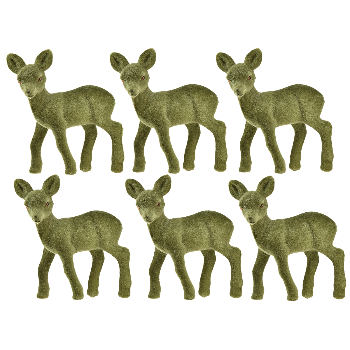 Decorative figure deer fawn flocked Christmas figures green 10.5cm 6 pcs