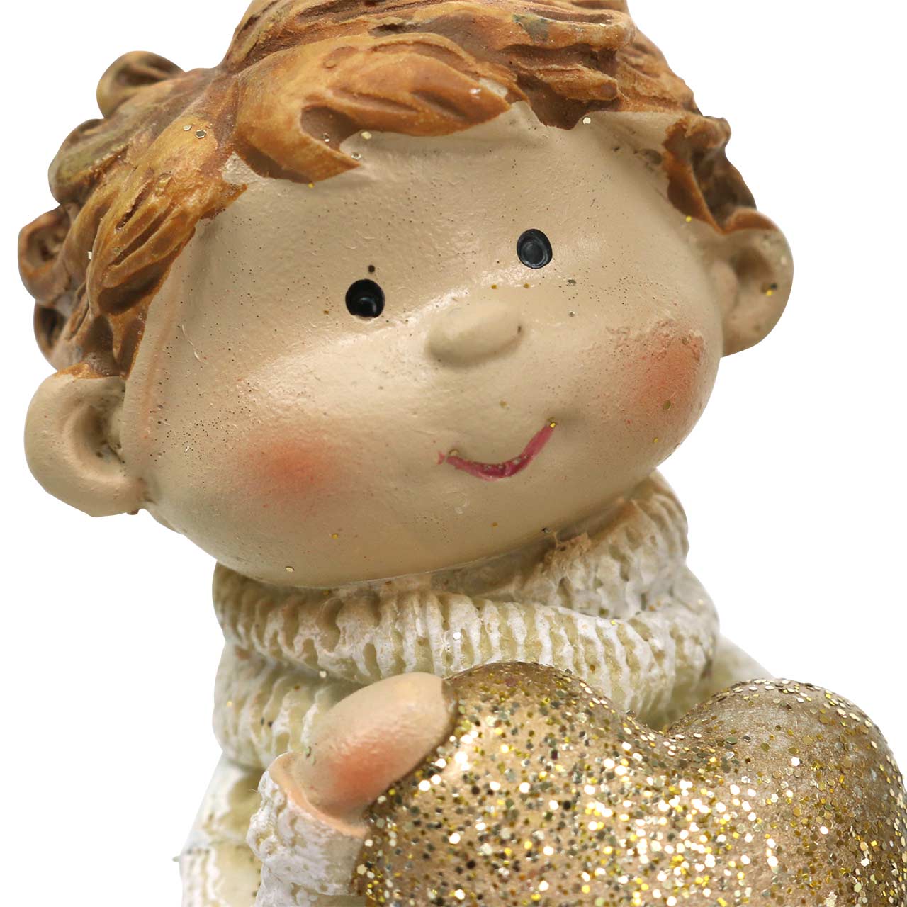 Both figures are painted in great detail, from the multi-colored parting to the deep brown sole of the boots. The shapes of the polyresin figures are just as lovingly and precisely designed. Every child holds a golden heart decorated with glitter, and pants and skirt also have a very festive sparkle.