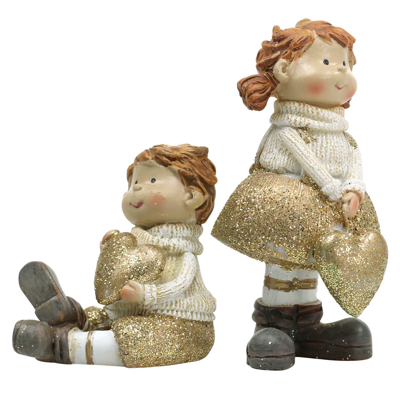 Decorative figures little brother and sister gold, glitter 10 / 6.5cm, set of 2