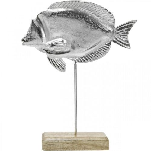 This decorative fish combines cool silver metal and unique natural wood in an original maritime decoration.
