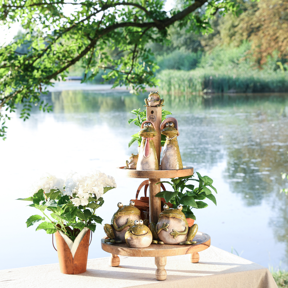 These green-brown ceramic frogs harmonize perfectly with natural materials and textures. Combine them with other decorative elements such as wood or stone for a natural flair. On Floristik24 you will find matching items such as rustic wooden bowls or stone candle holders that perfectly complement the soft tones and textures of the frog decoration. The frogs look particularly beautiful in combination with seasonal flower arrangements or fresh greenery from the garden. Their symbolic spring associations are underlined by these creative uses.