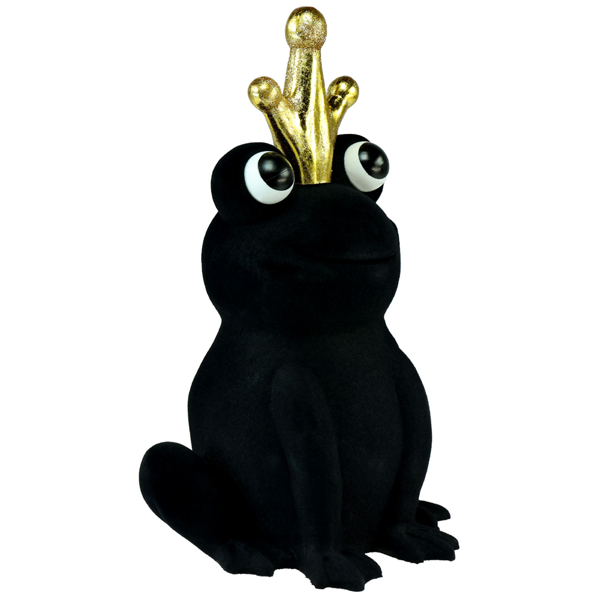 But it's not just his golden crown that makes the frog prince look incredibly magical. – Because the body of the sitting frog figure is completely flocked in black, which makes the decorative figure look even more magical.