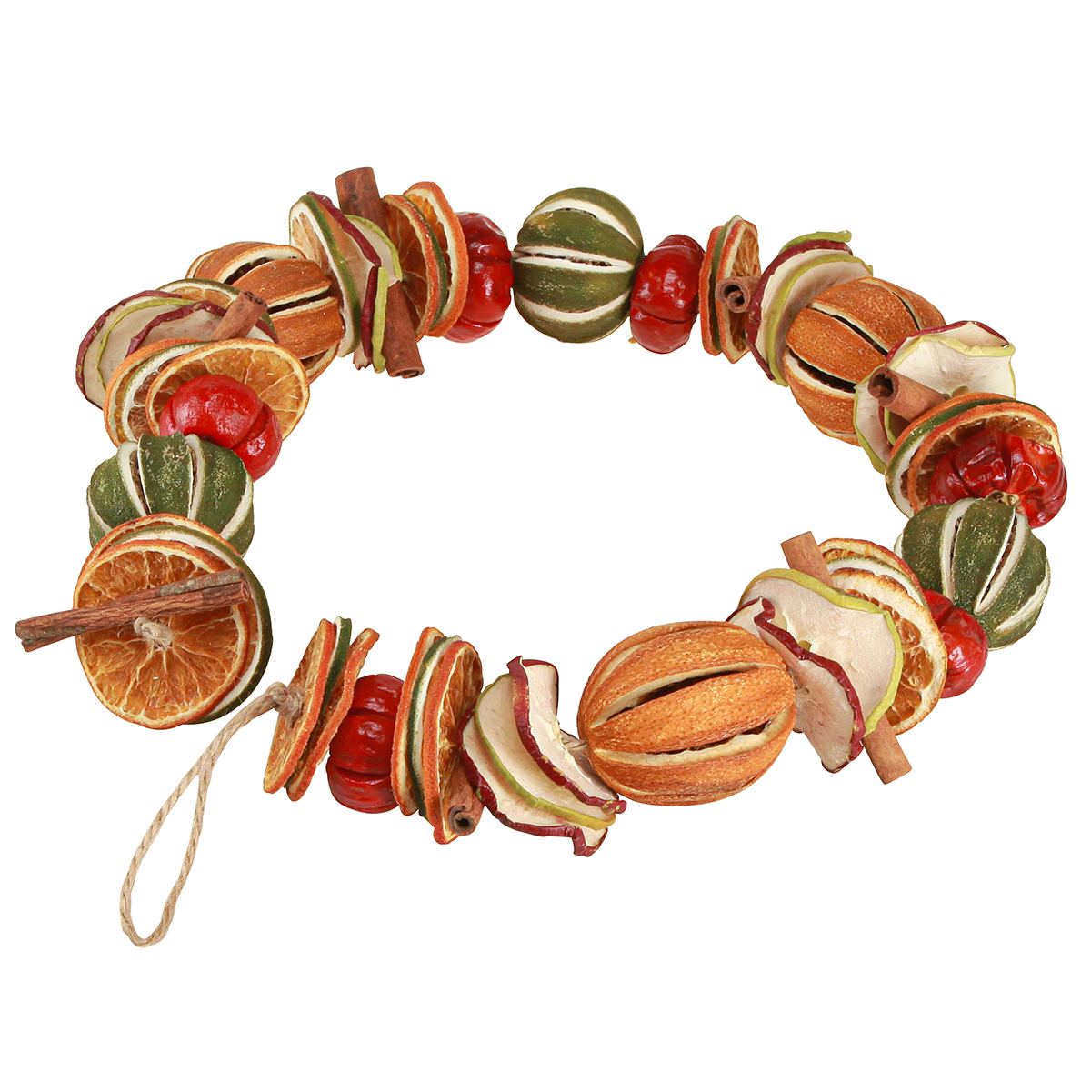 Accentuate the beauty of the season with our dried fruit garland. This natural decoration is not only an eye-catcher as a door decoration for autumn, but also perfect for creating window decorations and tables. The warm colors of the dried fruit exude a natural ambience and invite you to feel welcome. Since cinnamon is also part of the mix, the garland is also suitable as a Christmas decoration!