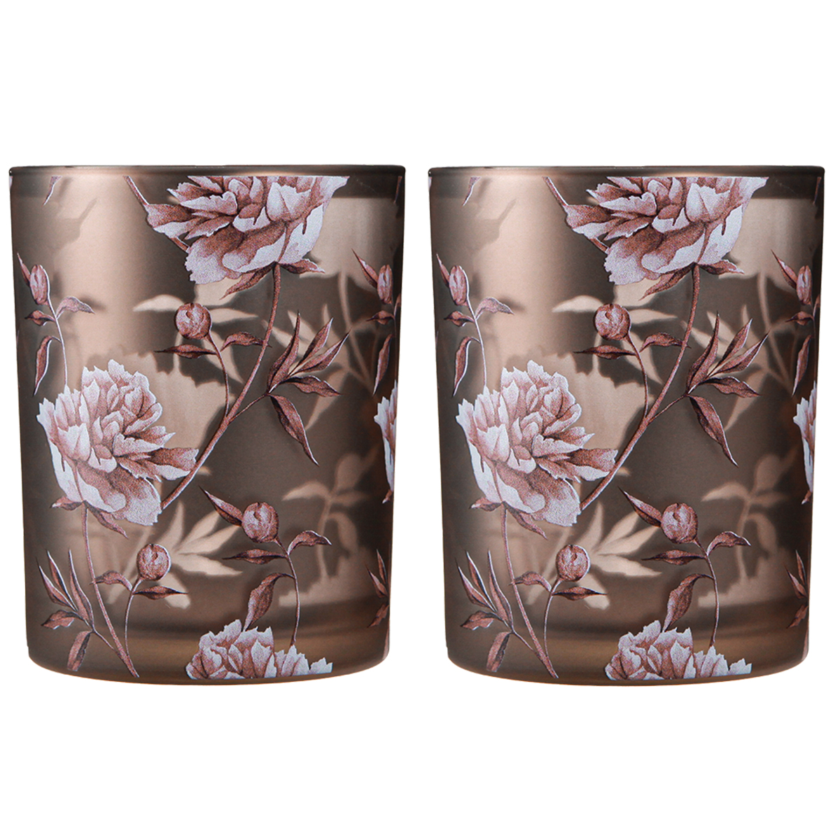 Decorative glass lantern peonies silver brown H12.5cm 2 pcs
