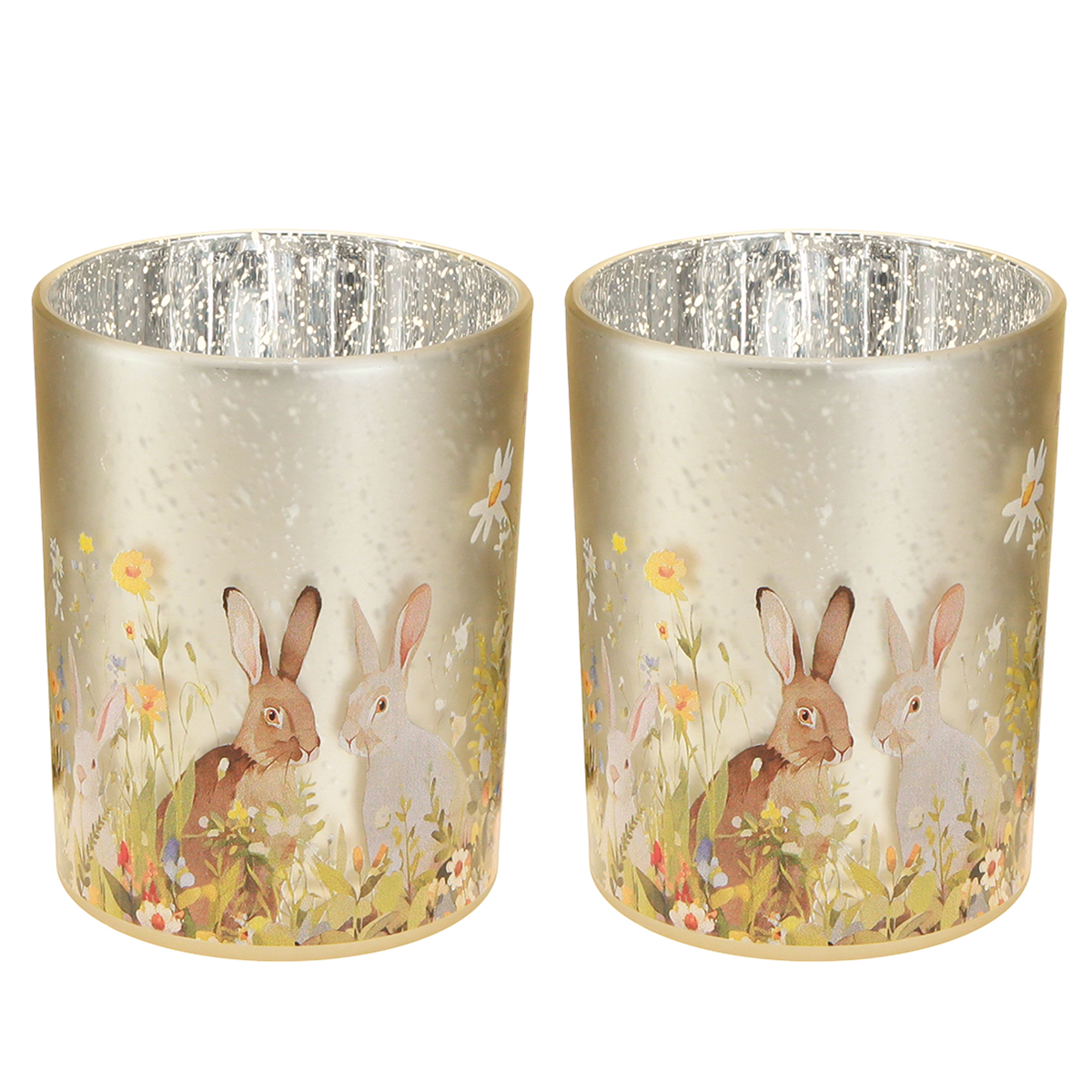 Product name: Decorative glass lantern with Easter bunny motif for springtime home accents, 12.5cm, 2 pieces.