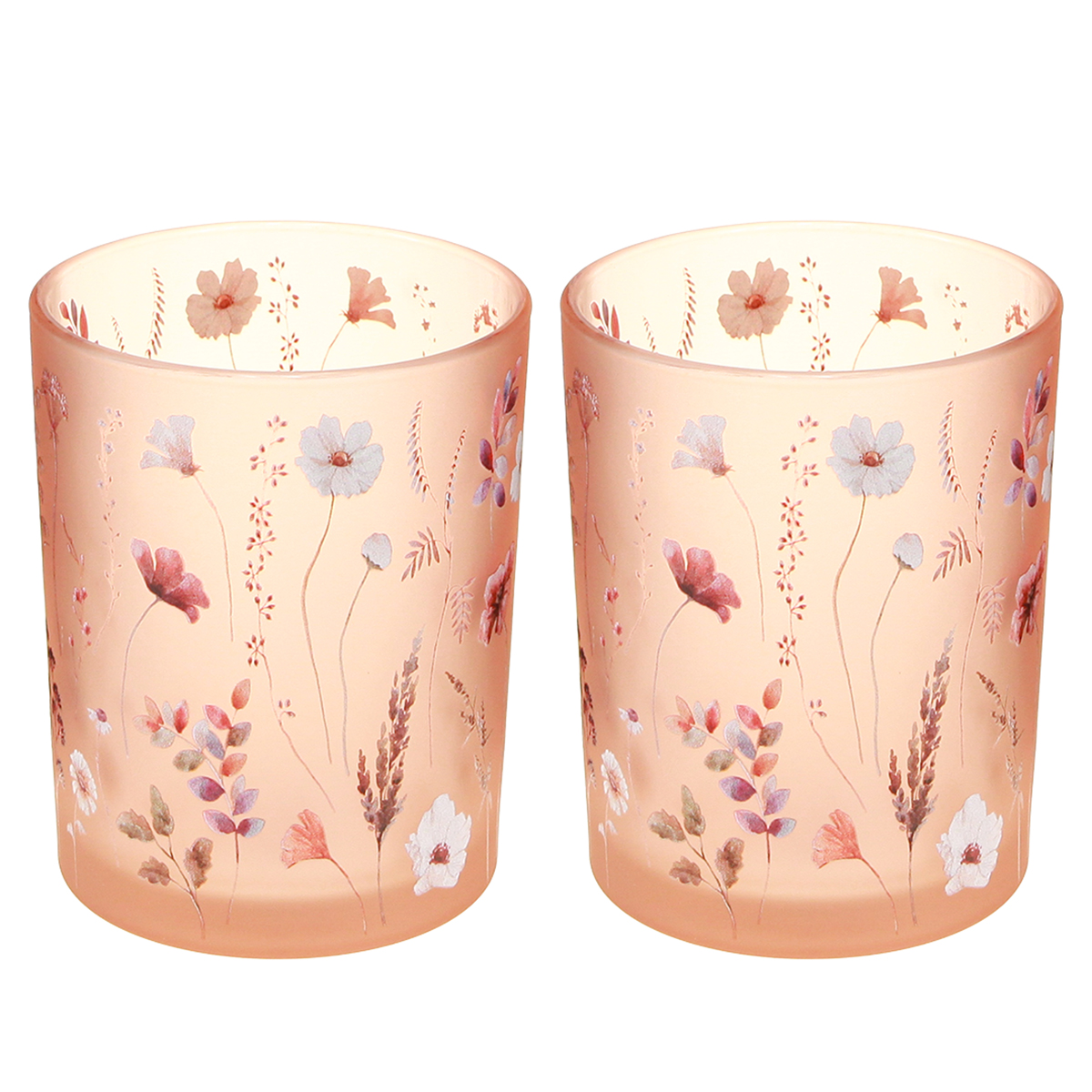 Measuring 12.5 cm in height and 10 cm in diameter, these decorative glass lanterns are the perfect way to bring light and coziness into your home. The dreamy floral design in harmonious pink and white creates a calming and elegant atmosphere – ideal for a comfortable living space. Whether used as a stylish tealight holder on your windowsill or as the highlight of a festive table setting, their versatility is virtually limitless. With a tealight or small candle, the lanterns conjure a warm, soothing play of light that transforms the room into an inviting oasis. Try it for yourself: Who doesn't love a cozy evening atmosphere by candlelight? These lanterns also combine beautifully with other floral elements. Think fresh bouquets in complementary colors or a romantically set table in a country style. For a creative touch, you can fill them with small decorative stones, sand, or dried flowers – the possibilities are endless. Tip: These floral tealight holders also make excellent gifts! Enchant your loved ones with a magical decoration that evokes memories of warm summer evenings and a connection to nature.