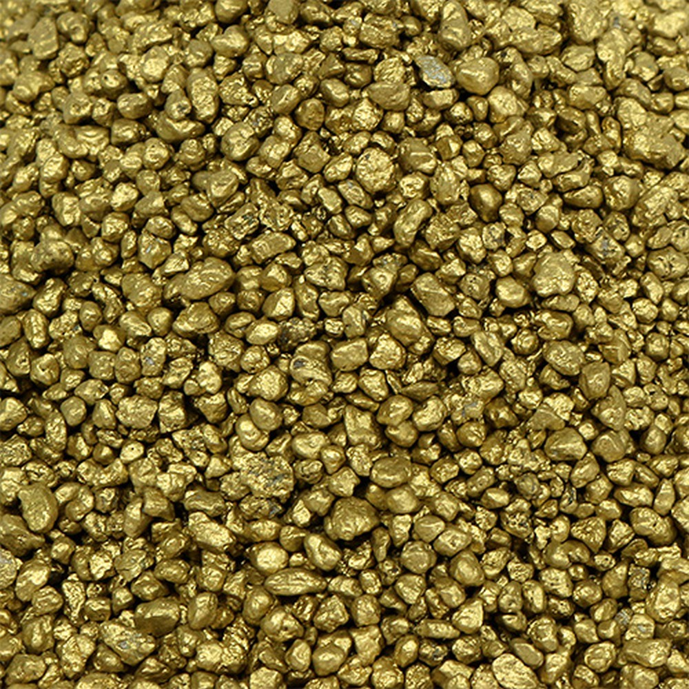Yellow gold colored decorative granules are available in our shop in a bag weighing around 2 kilograms. The stones are approximately between 2 and 3 millimeters in size and can also be placed on potting soil due to the high-quality finish.