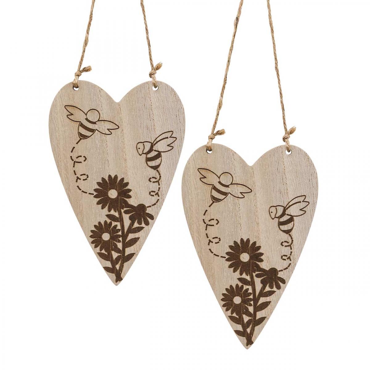 Decorative hanger wooden decorative hearts flowers bees decoration 10x15cm 6 pieces