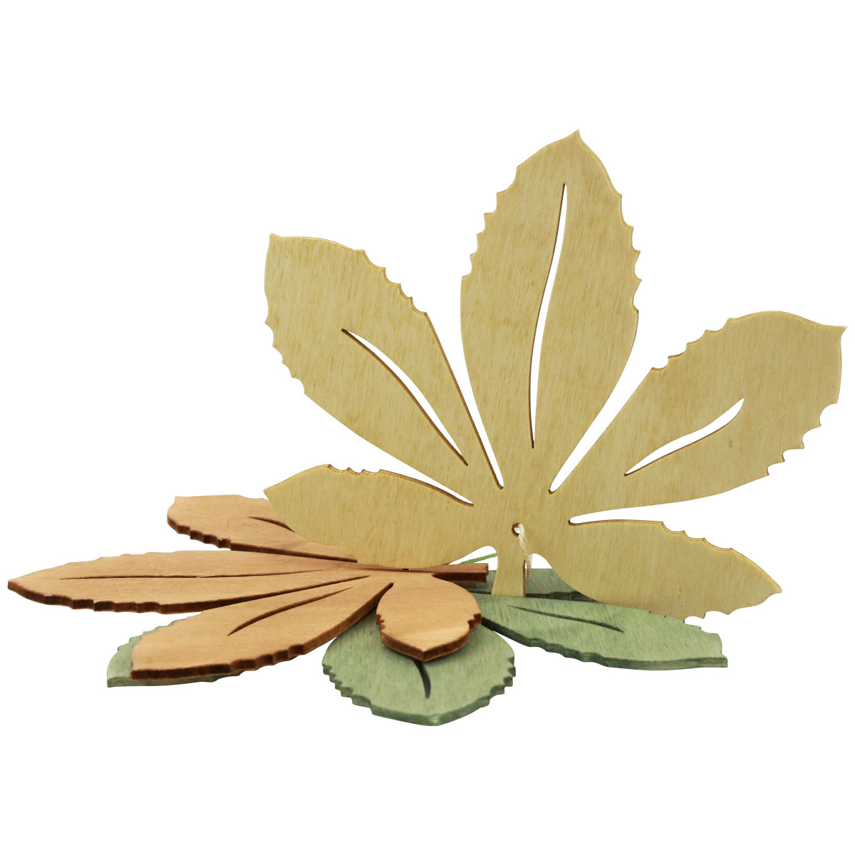 Product name: Decorative Hanging Wood Autumn Leaves Green Natural Brown 12x10cm 12 pcs