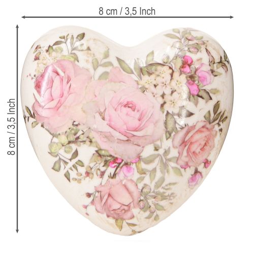 Product name: Decorative hearts with rose ceramic in cream pink 8x8cm 3pcs
