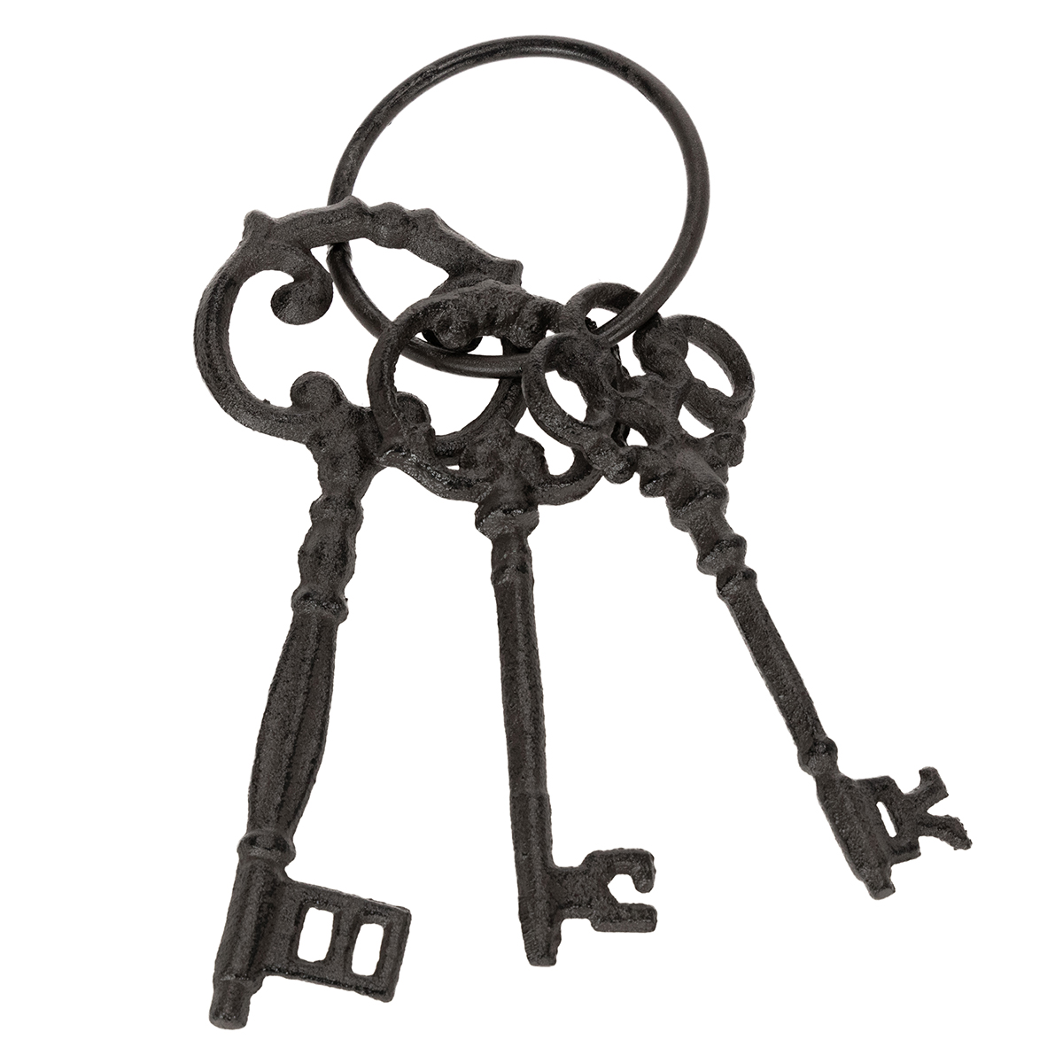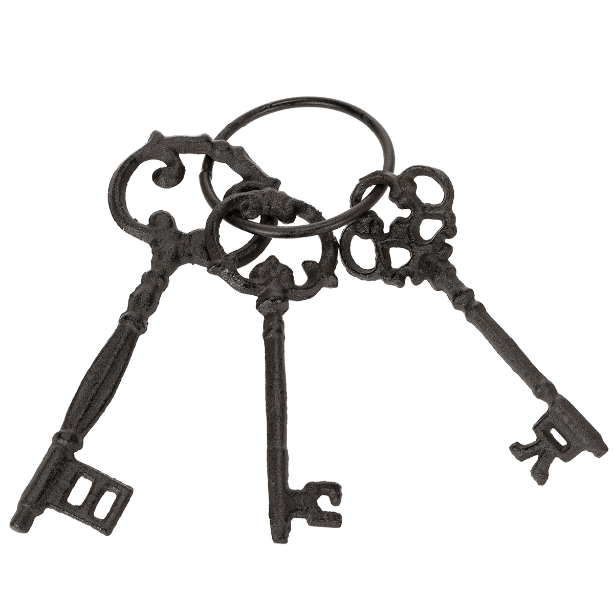 - Design: three different keys in shapes reminiscent of antique models, attached to a ring