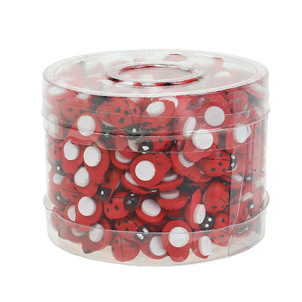 The red decorative ladybugs to stick are delivered in a small box with a total of 360 pieces. Each decorative beetle is about 1 centimeter in size.