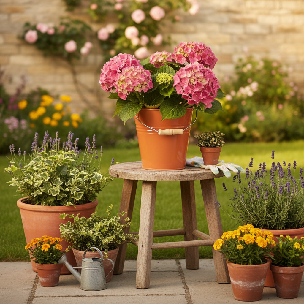 The orange-brown planter is designed like a bucket. The metal decoration brings a breath of fresh air into your floral decoration!