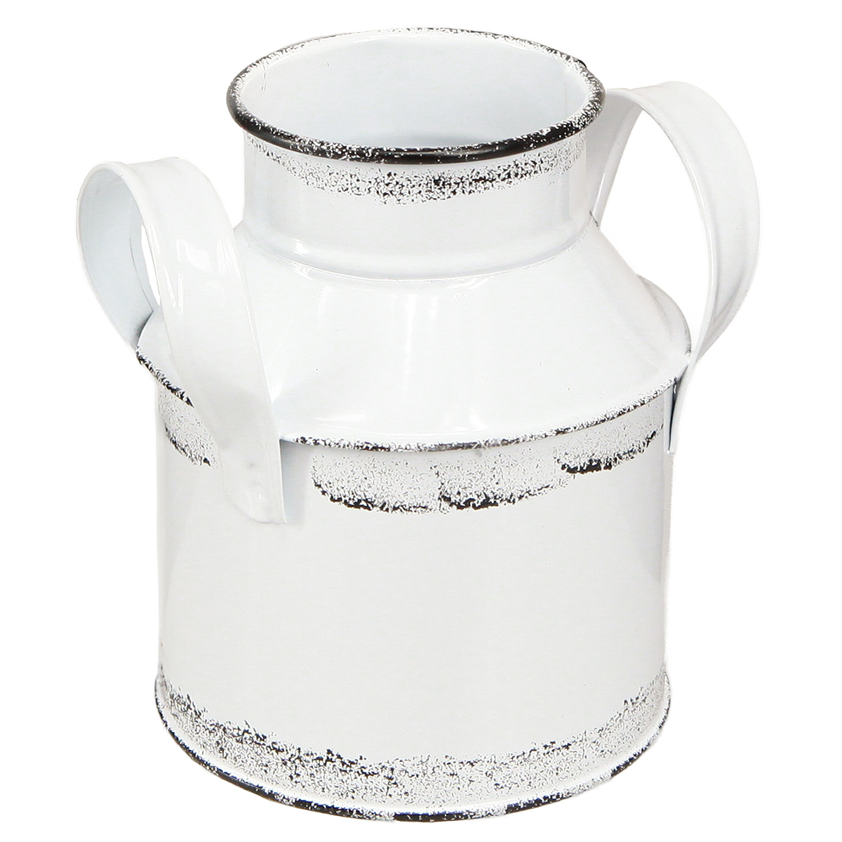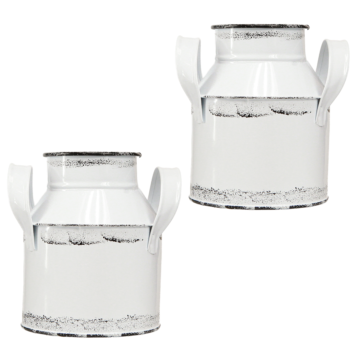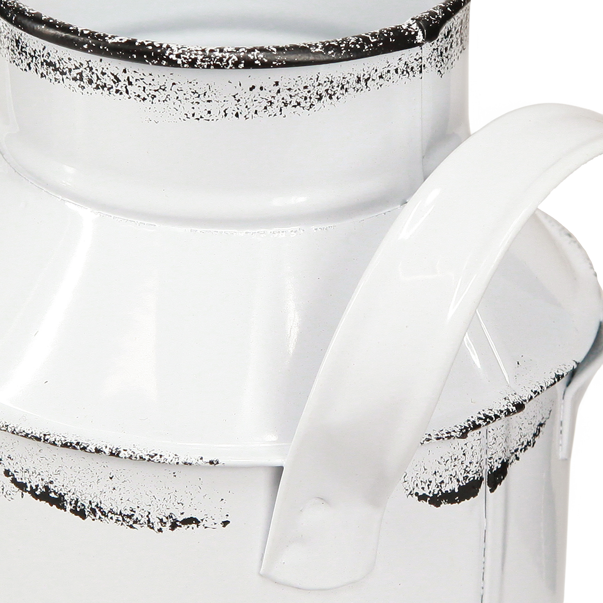 The decorative jug with handles made of metal in white and black exudes a rustic charm that is reminiscent of times long past. With its height of around 13 cm, it is both compact and versatile. This metal decoration, consisting of two stylish decorative jugs, is a real highlight for any home that is looking for a mix of modern design and nostalgic flair. The jugs have black edges that give them a rustic touch. In a country house style, they fit perfectly with a cozy interior that relies on rustic decoration. Whether as a vase for dried flowers or as a unique element on your dining table, these metal jugs blend harmoniously into any interior design. Use the jugs to set a stylish accent in your living room or kitchen.