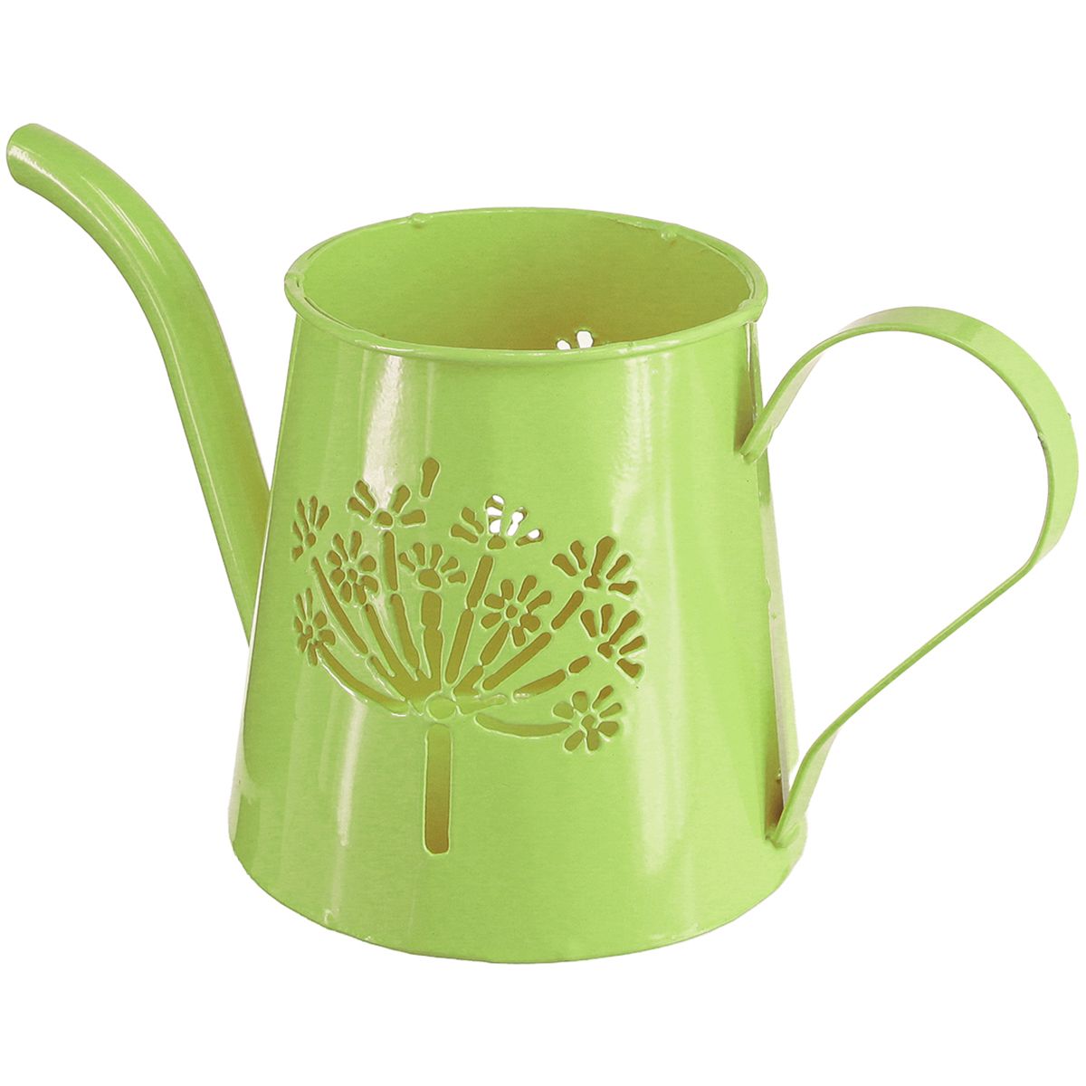 The decorative metal watering can with the openwork dandelion motif is a stylish eye-catcher for any living environment. With its fresh apple green color, this small metal can is not only practical, but also a decorative highlight. Made from robust metal, this watering can combines classic elegance with modern functionality. The composition of colorful lightness and timeless design makes it perfect as a decorative table decoration or for use in creative DIY projects.