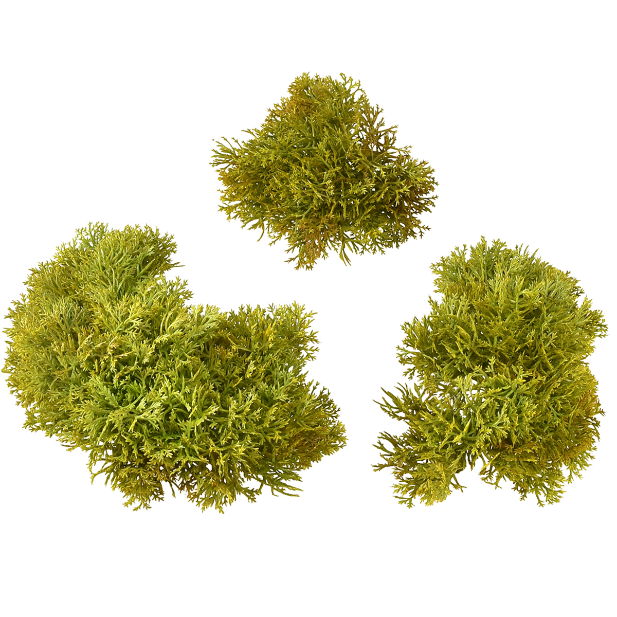 - Set of 3 artificial moss pads in sizes 10, 12 and 14 cm