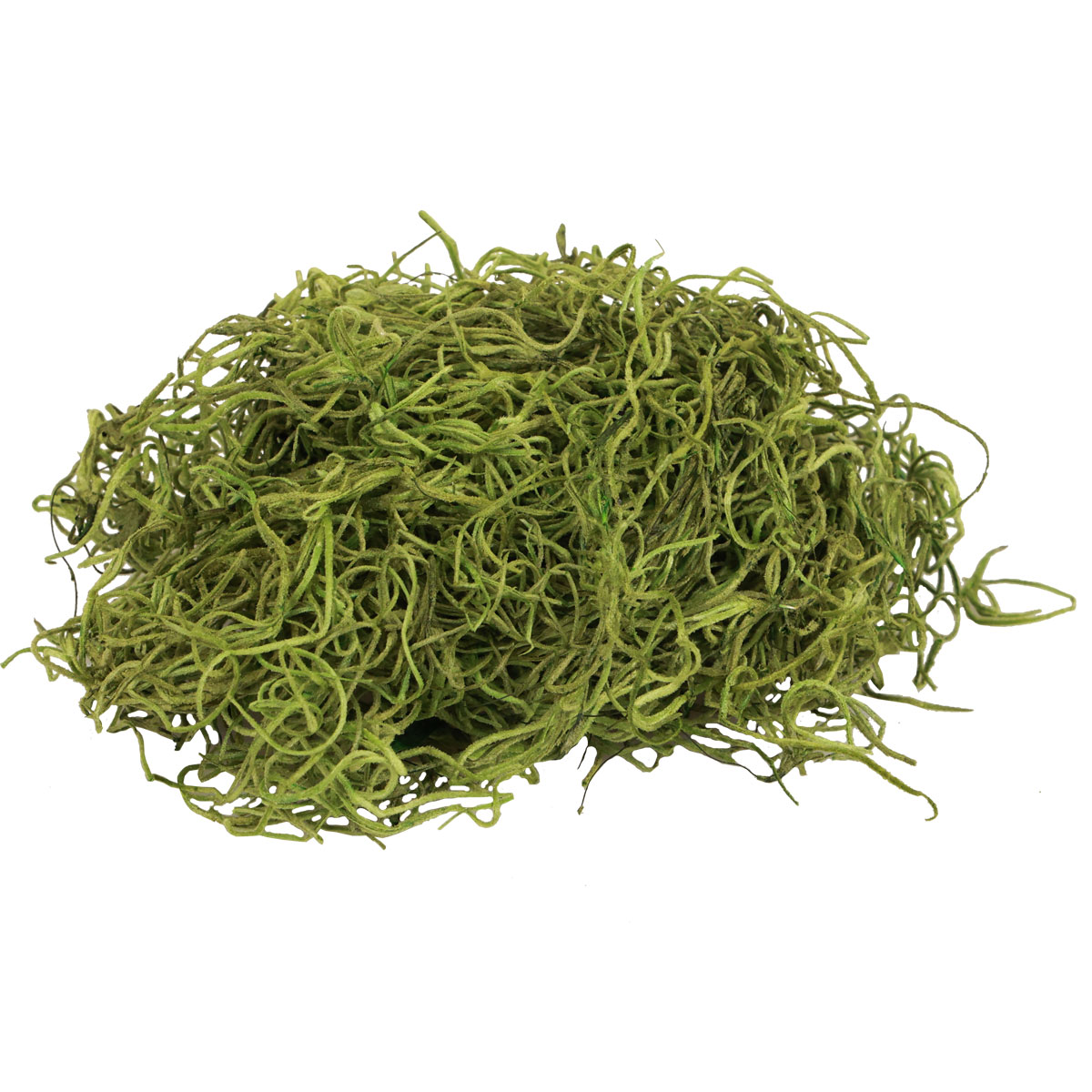 The forest moss impresses with its long, curly stems, which give this natural decoration an unusual flair. The decorative moss is reminiscent of exotic natural fibers.