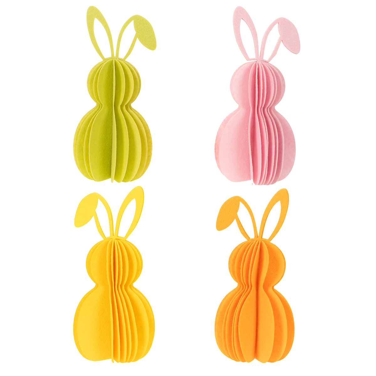 - Set of 4 decorative paper bunnies in yellow, orange, green and pink