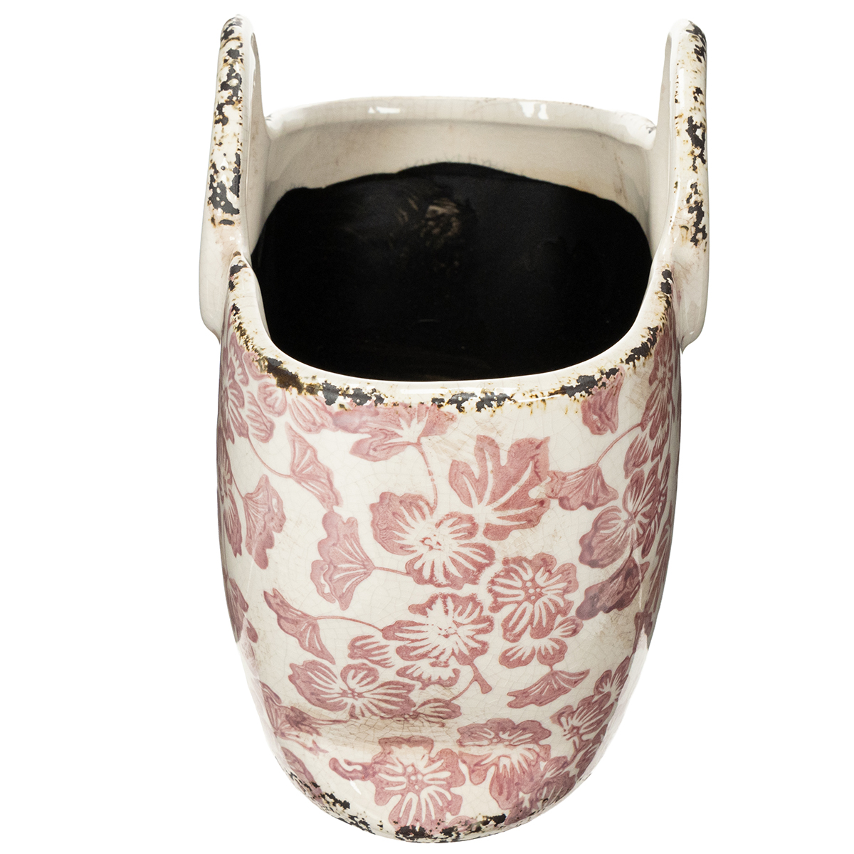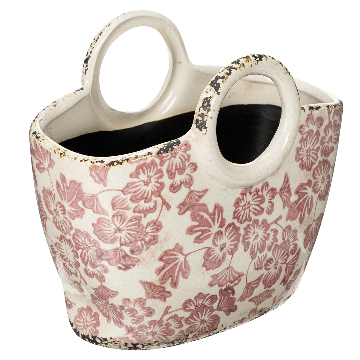 Decorative plant pot with handle, floral, 21cm