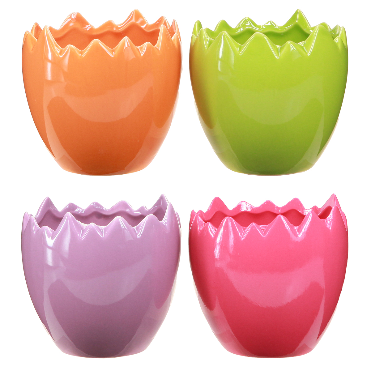 Decorative planter Easter colorful Easter eggs ceramic Ø11cm 4 pcs