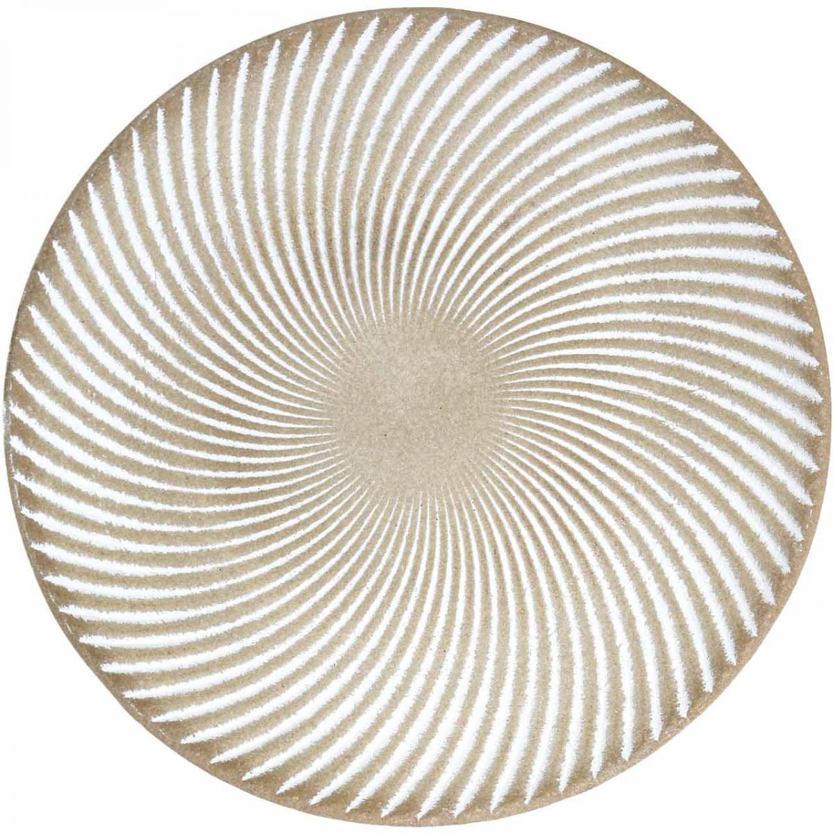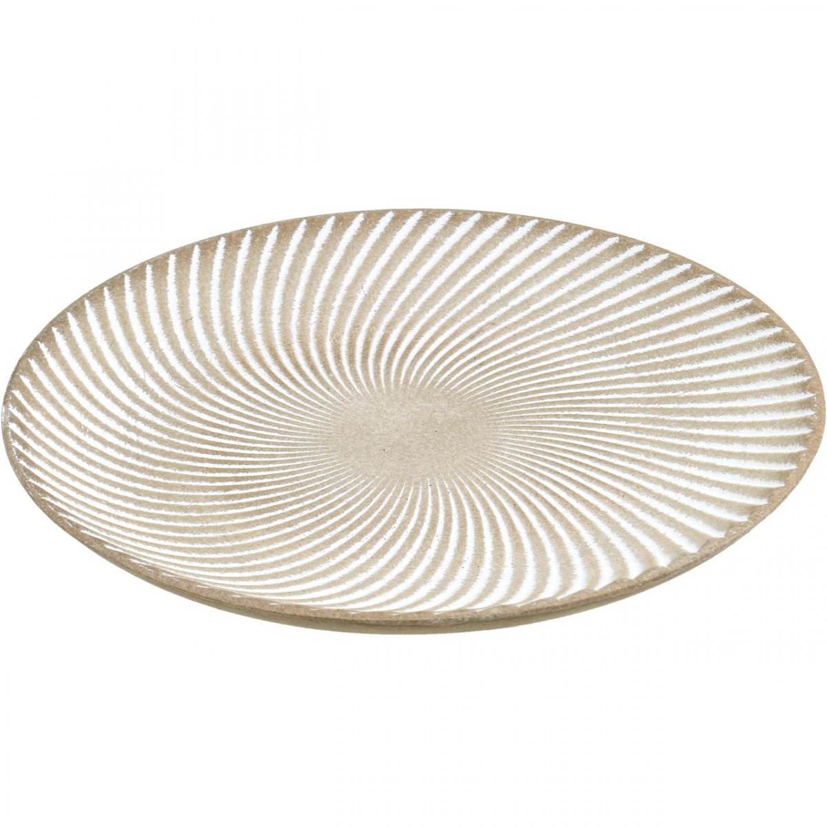Decorative plate round white brown grooves table decoration Ø35cm H3cm