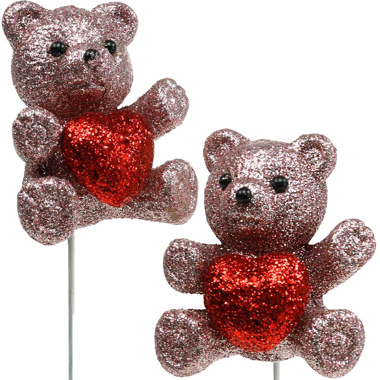 Decorative plug bear with heart, Valentine's Day, flower plug glitter 9 pcs