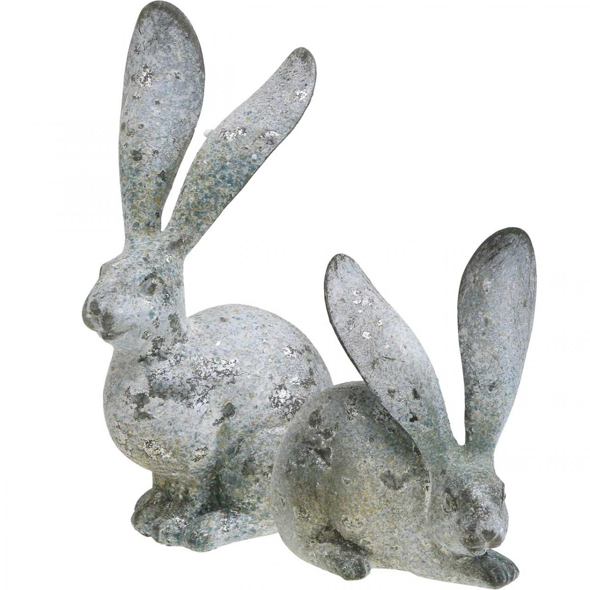 Decorative rabbit, garden figure in concrete look, shabby chic, Easter decoration with silver accents H21/14cm set of 2