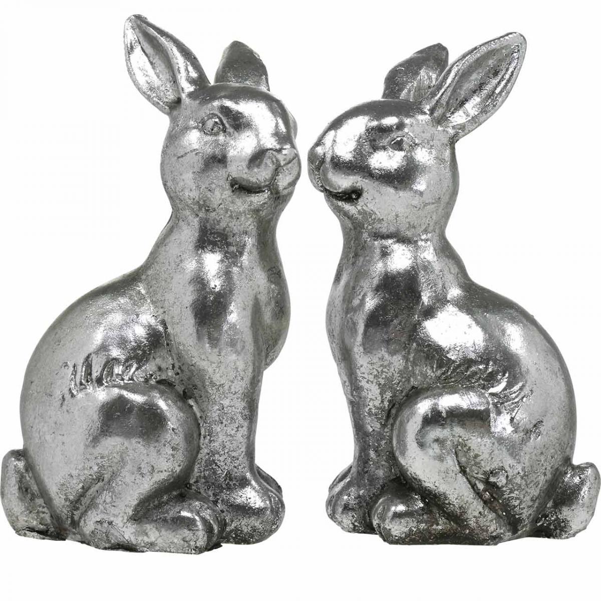 Product name: Decorative rabbit sitting Easter decoration silver vintage H13cm 2 pcs
